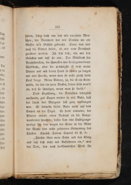 haben, ſehen doch nur aus wie unraſirte Men⸗ ſchen, der Bernhard hat wie Simſon nie ein Meſſer in's Geſicht gebracht. Einer von uns muß die Vittore holen, eh wir vom Bernhard gerädert werden. Ich bitt dich, thu mir den uhen Gefallen und laß' ſie mir. Der Mühlbach hat Prachtforellen, die ſchmecken wie fleiſchgewordener