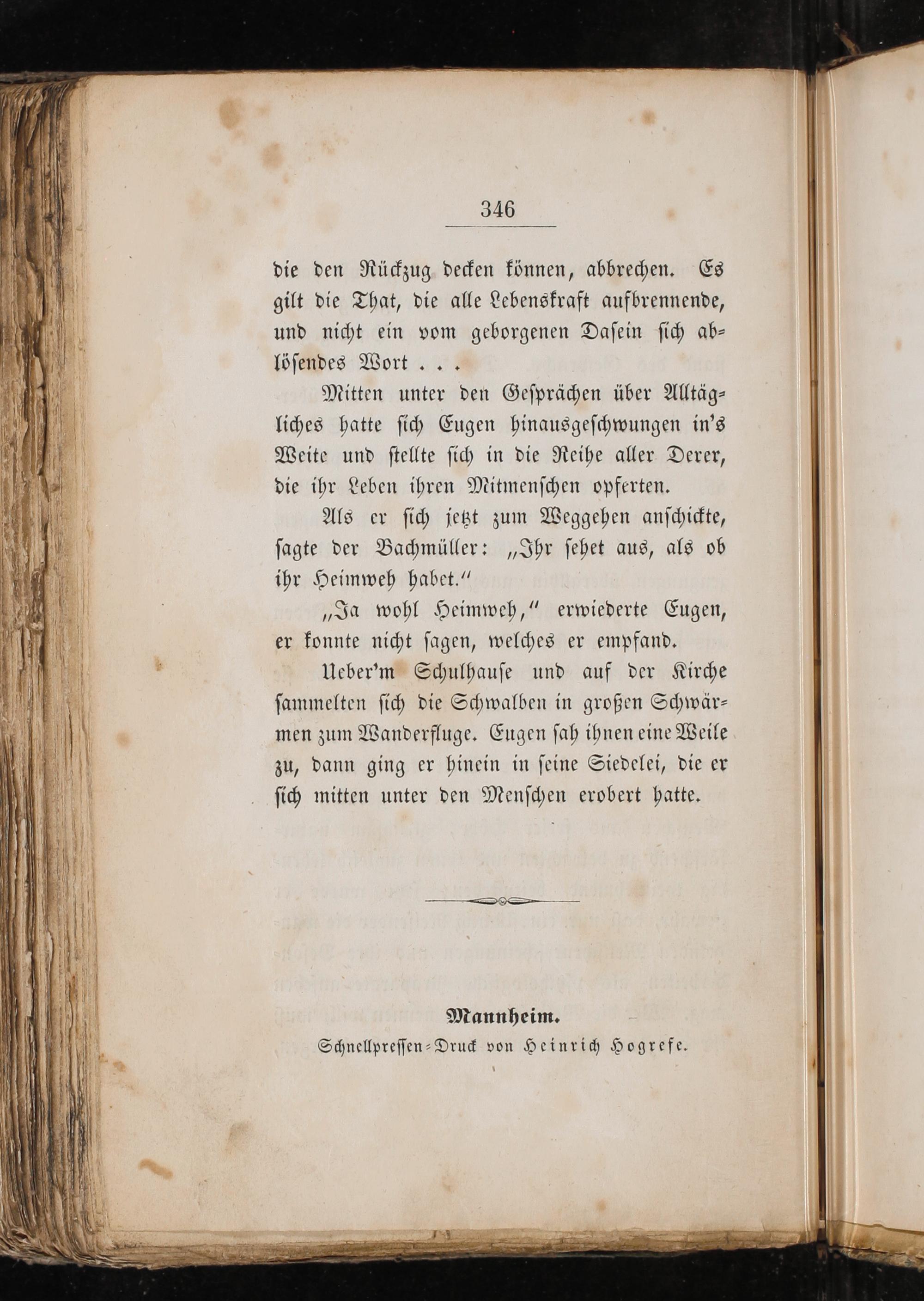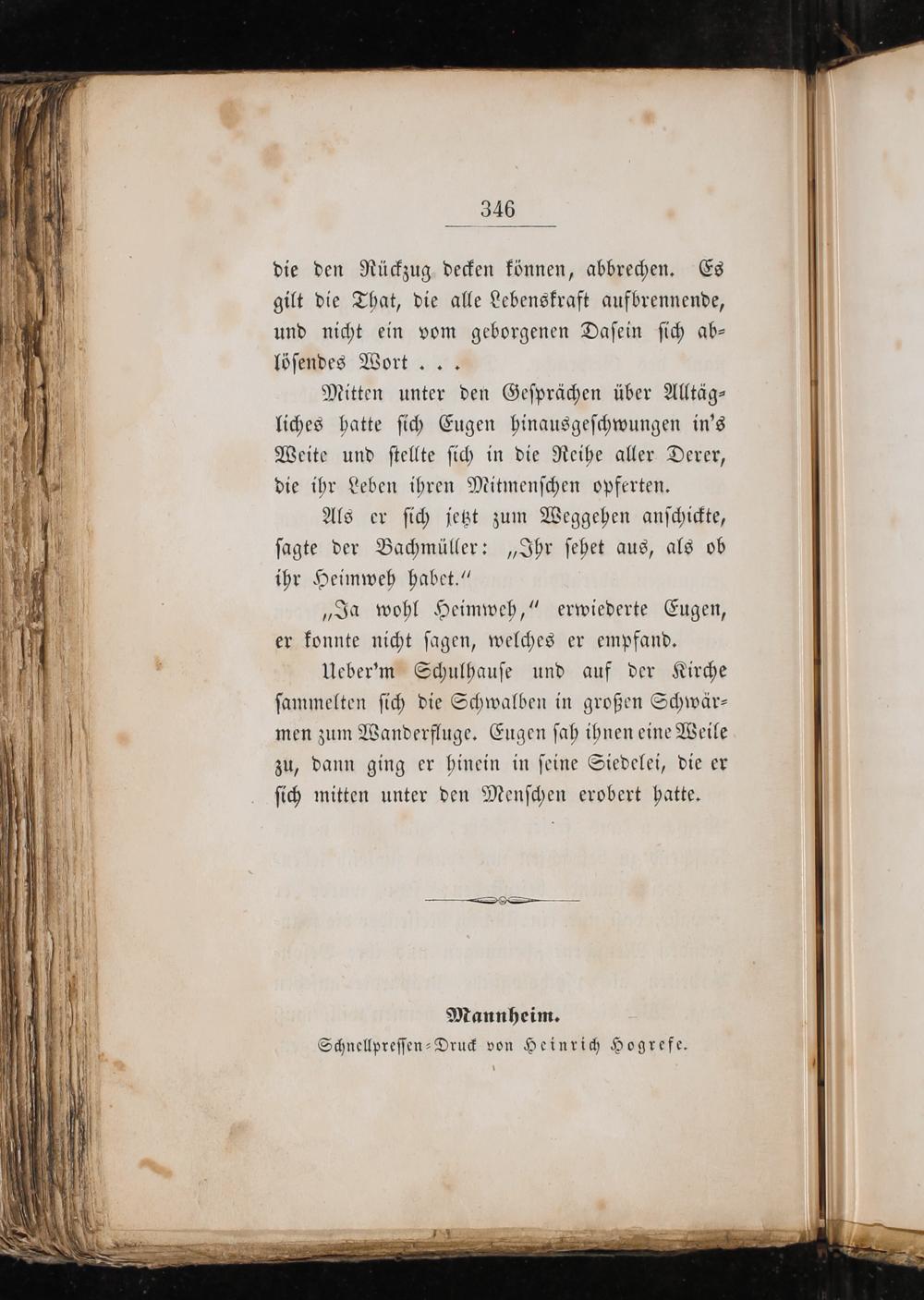Ueber'm Schulhauſe und auf der Kirche ſammelten ſich die Schwalben in großen Schwär— men zum Wanderfluge. Eugen ſah ihnen eine Weile zu, dann ging er hinein in ſeine Siedelei, die er ſich mitten unter den Menſchen erobert hatte.