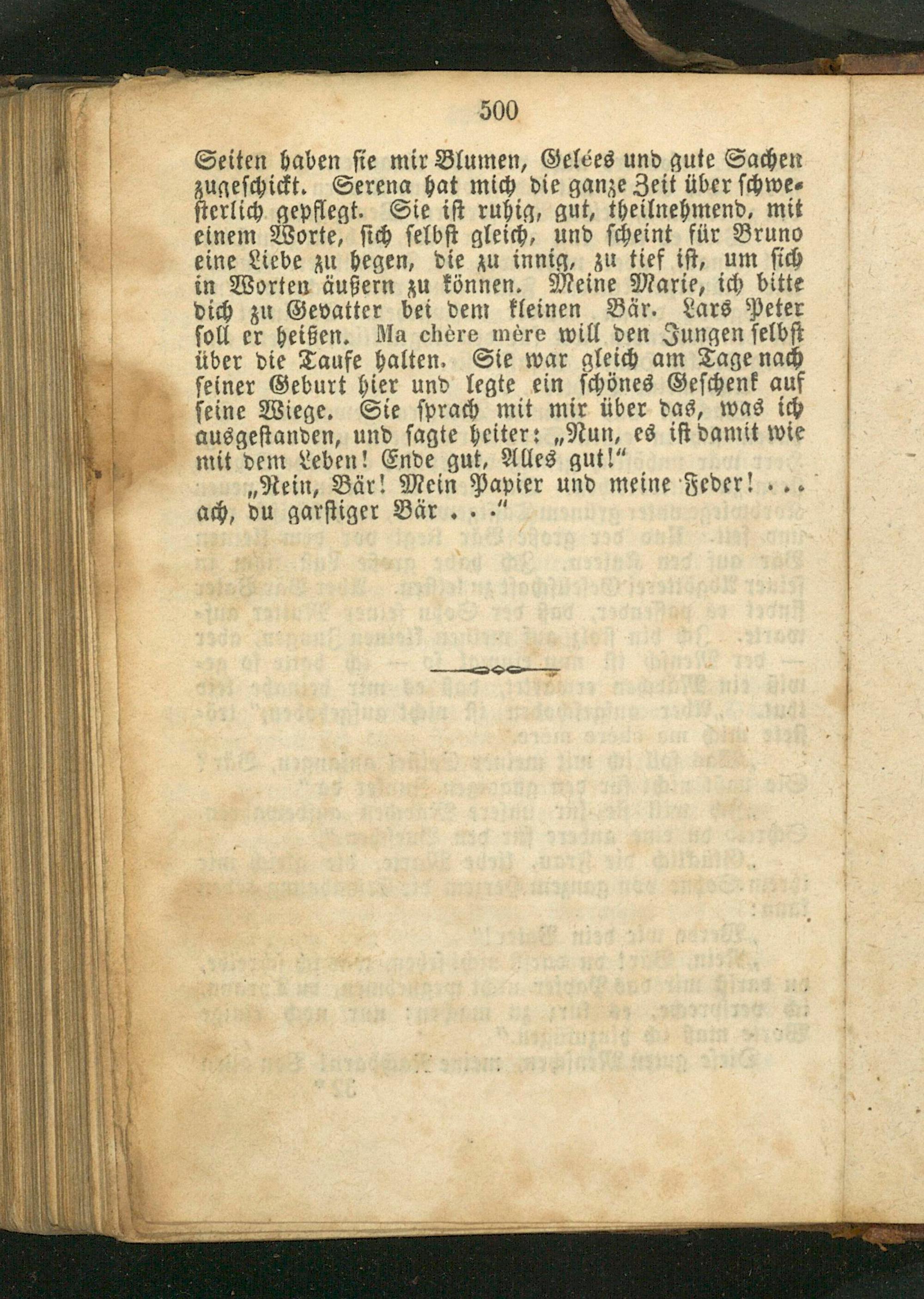 „Rein, Bär! Mein Papier und meine Feder!.. ach, du garſtiger Bär...