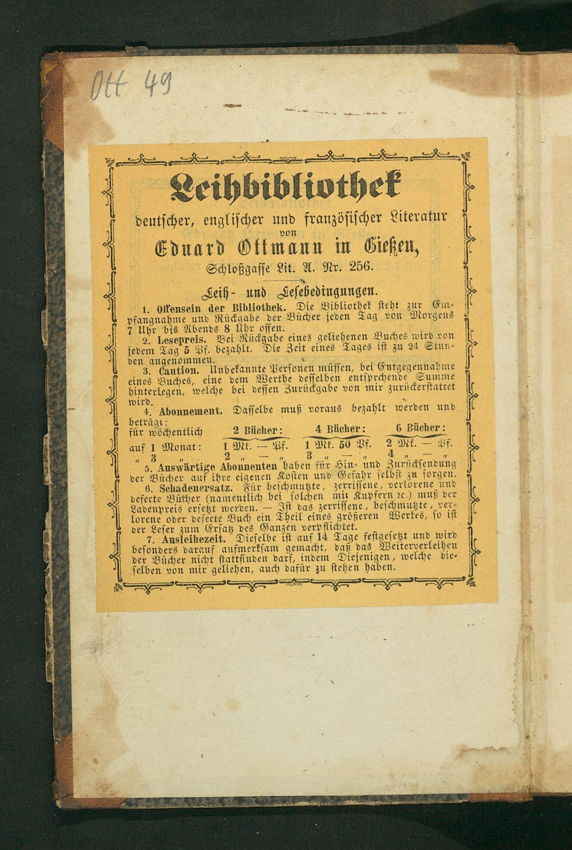 3. Caution. Unbekannte Perſonen müſſen, bei Entgegennahme eines Buches, eine dem Werthe deſſelben entſprchende Summe ſ hinterlegen, welche bei deſſen Zurückgabe von mir zurückerſtatret wird.