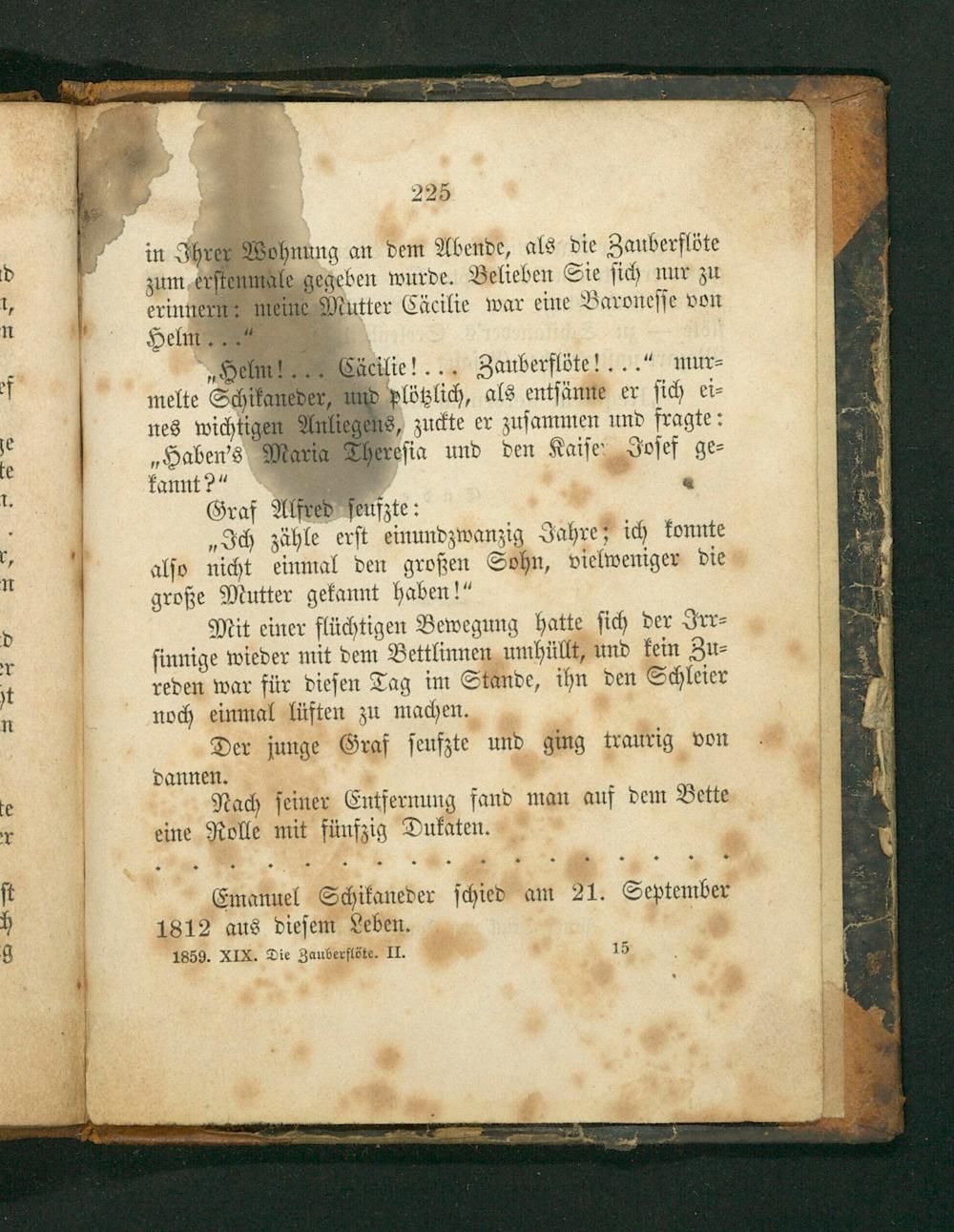 Emanuel Schikaneder ſchied am 21. September 1812 aus dieſem Leben. 1859. XIX. Die Zauberflöte. II. 15