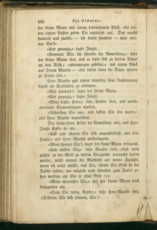 »Sein Sie ruhig, Perker,« fuhr Herr Wardle fort. »Scheren Sie ſich hinaus, Sir!«