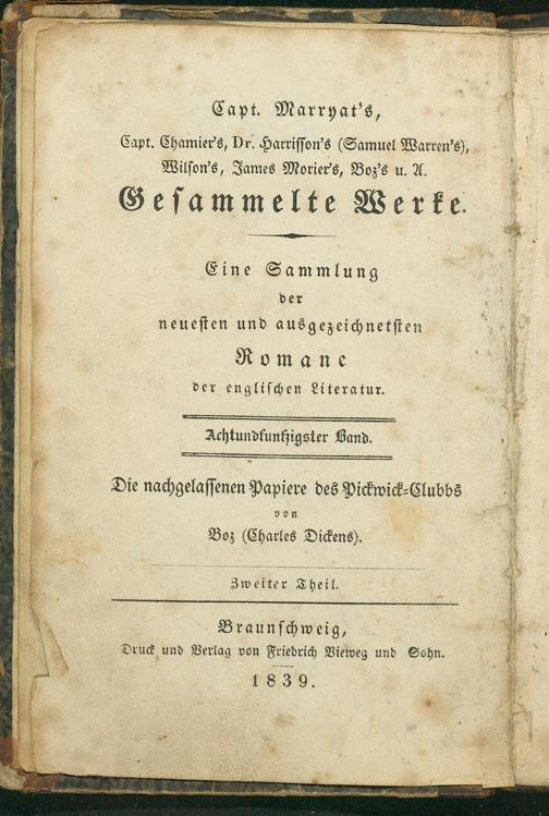 Capt. Chamier's, Dr. Harriſſon's(Samuel Warren's), Wilſon's, James Morier's, Boz's u. A.
