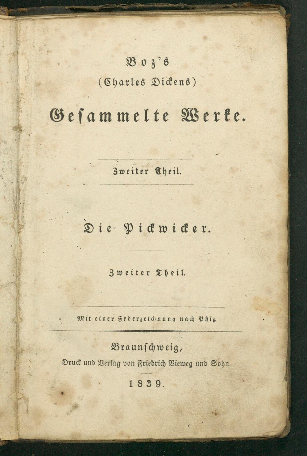 Mit einer Federzeichnung nach Phiz. Braunſchweig, Druck und Verlag von Friedrich Vieweg und Sohn. 1839. 5 .