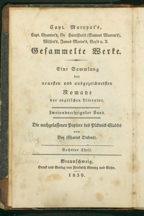 Capt. Marryat's, Capt. Chamier's, Dr Harriſſon's(Samuel Warren's), Wilſon's, James Morier's, Boz's u. A.