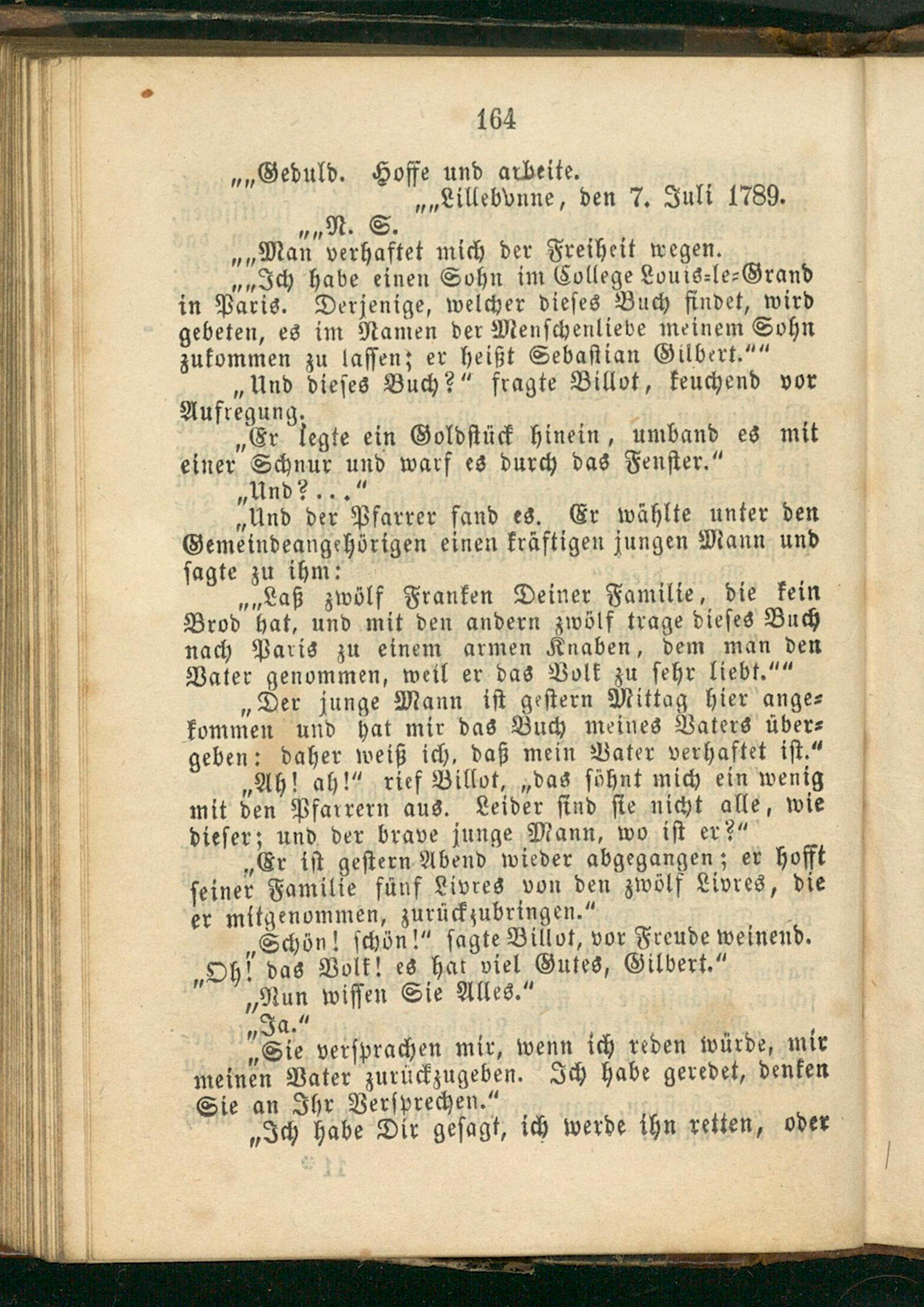 „„Laß zwölf Franken Deiner Familie, die kein Brod hat, und mit den andern zwölf trage dieſes Buch nach Paris zu einem armen Knaben, dem man den Vater genommen, weil er das Volk zu ſehr liebt.““