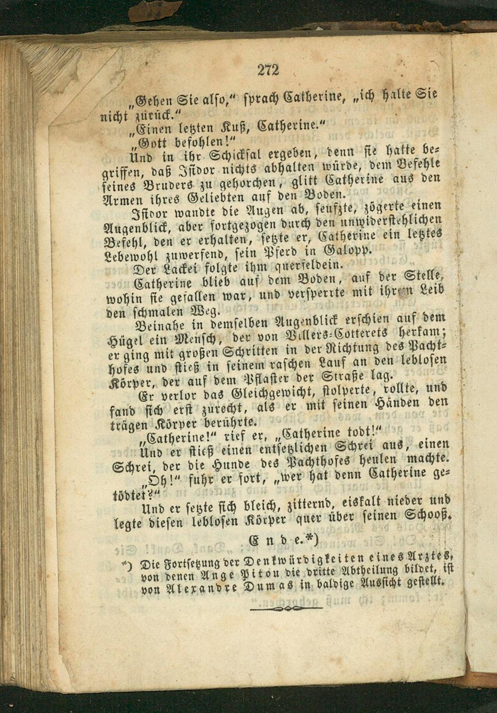 Einde.*) 5 *) Die Fortſetzung der Denkwürdigkeiten eines Arztes, von denen Ange Piton die dritte Abtheilung bildet, iſt von Alerandre Dumas in baldige Ausſicht geſtellt.