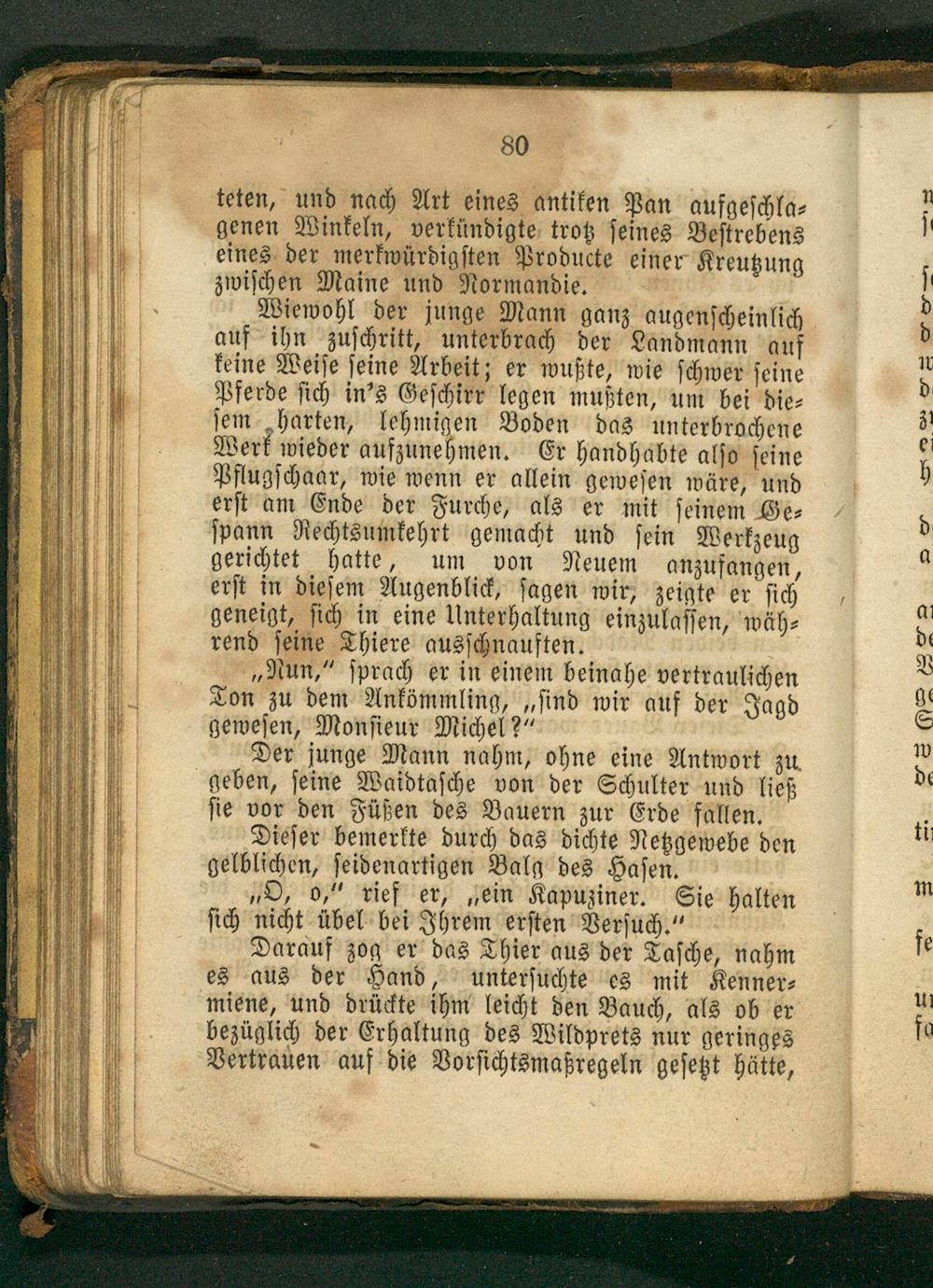 „Nun,“ ſprach er in einem beinahe vertraulichen Ton zu dem Ankömmling,„ſind wir auf der Jagd geweſen, Monſieur Michel?“