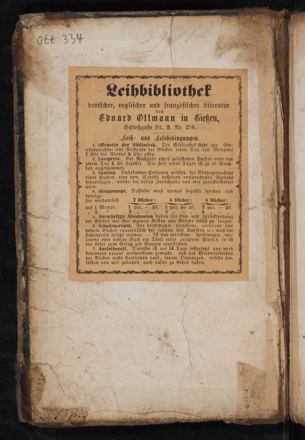 3. Caution. Unbekannte Perſonen müſſen, bei Entgegennahme eines Buches, eine dem Werthe deſſelben entſprechende Summe hinterlegen, welche bei deſſen Zurückgabe von mir zurückerſtattet wird.