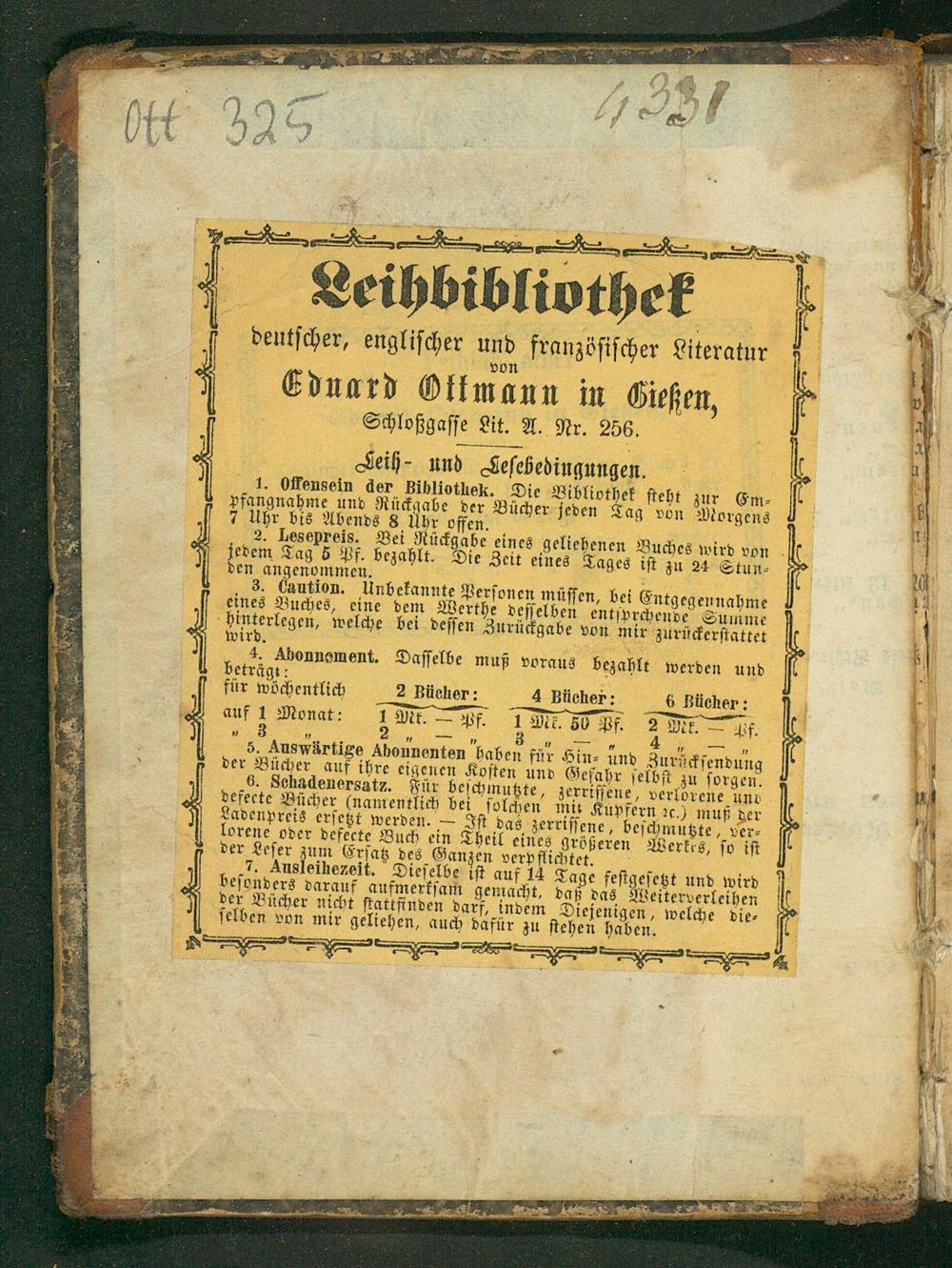 — R—— Leihbibliothek deutſcher, engliſcher und franzöſiſcher Literatur ¹ Eduard Ofkmann in Gießen,