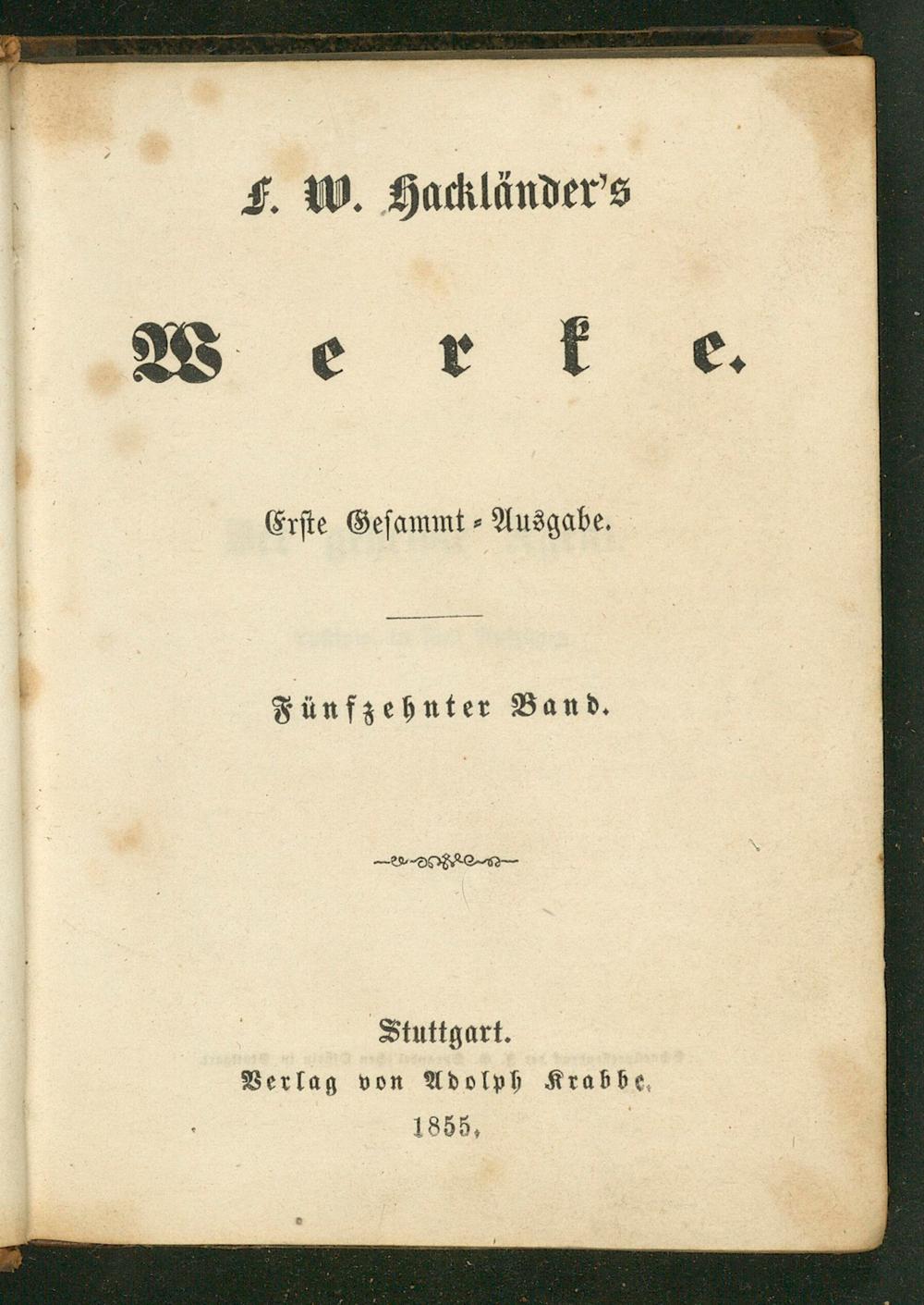 f. W. Hackländer's Werke. Erſte Geſammt⸗Ausgabe. Fünfzehnter Band. —SO Stuttgart. Verlag von Adolph Krabbe. 1855,