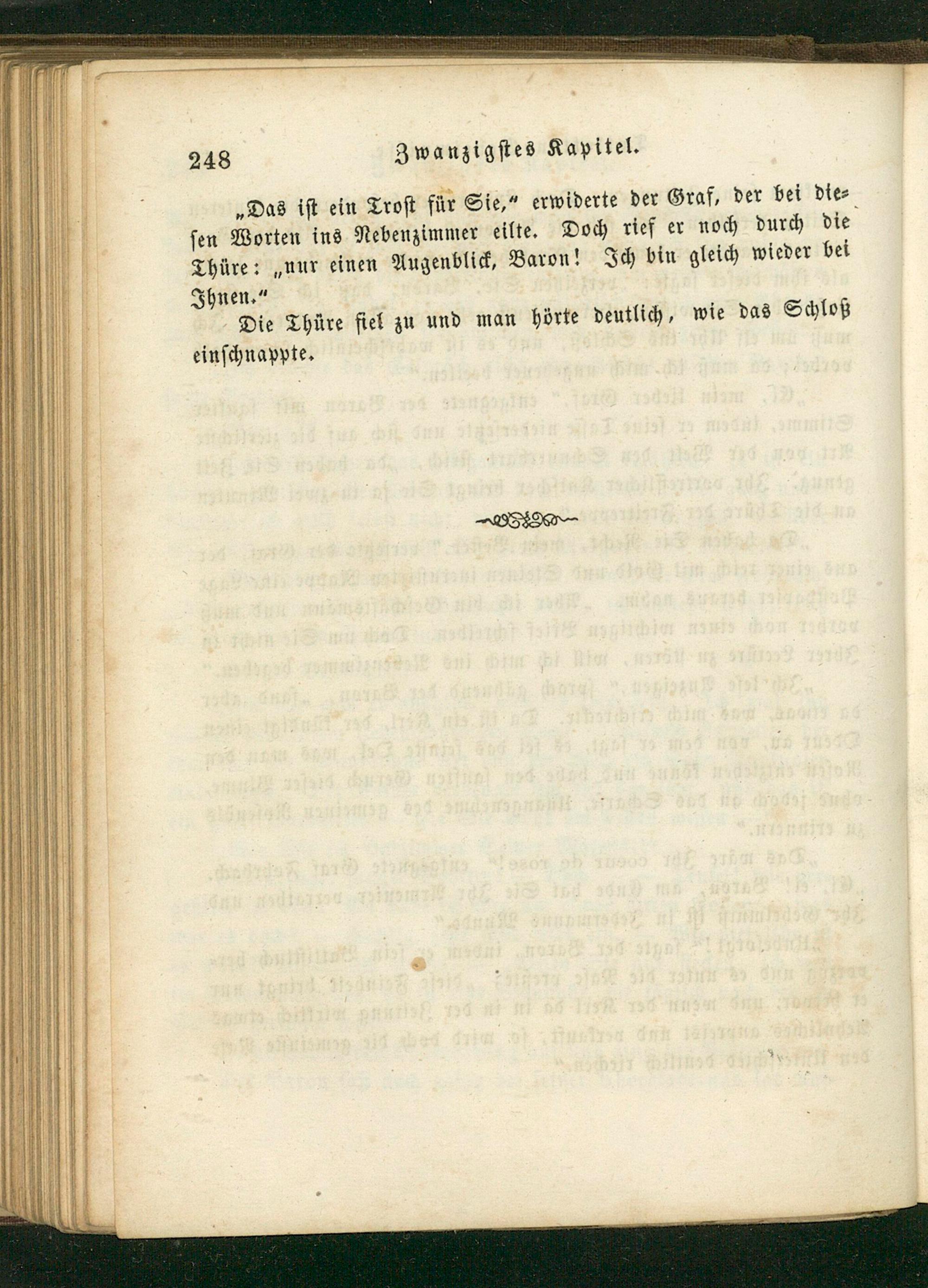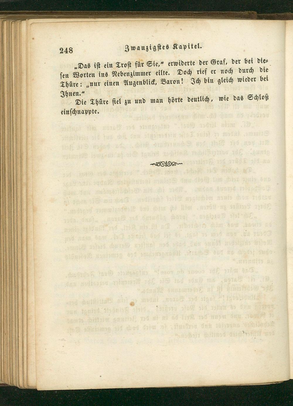 „Das iſt ein Troſt für Sie,“ erwiderte der Graf, der bei die⸗ ſen Worten ins Nebenzimmer eilte. Doch rief er noch durch die Thüre:„nur einen Augenblick, Baron! Ich bin gleich wieder bei Ihnen.“