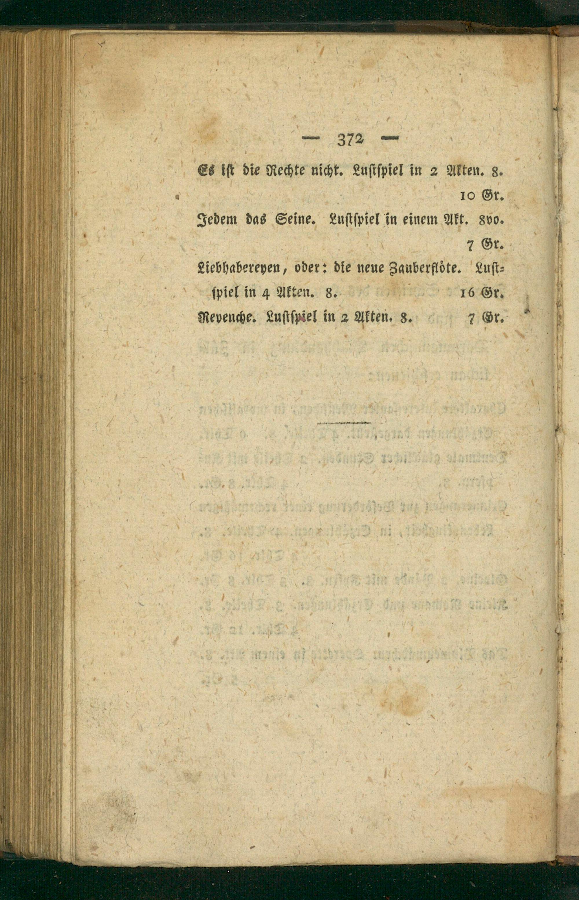 7 Gr. Liebhabereyen, oder: die neue Zauberflöte. Luſt⸗ ſpiel in 4 Akten. 8. Revenche. Luſtſpiel in 2 Akten. 8. 7 Gr.