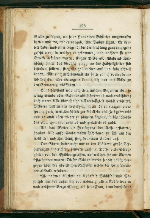 Als das Wetter die Fortſetzung der Reiſe geſtattete, brachen Alle auf; Kosko nahm Tſchekawa zu ſich auf den Schlitten und Kutſchiniz ſtieg bei einem Andern auf.