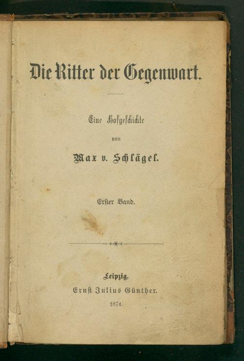 Die Ritter der Gegenwart. Eine Hokgeſchichte von Max v. Schlägel. Erſter Band. Leipzig, Ernſt Julius Günther. 1874.