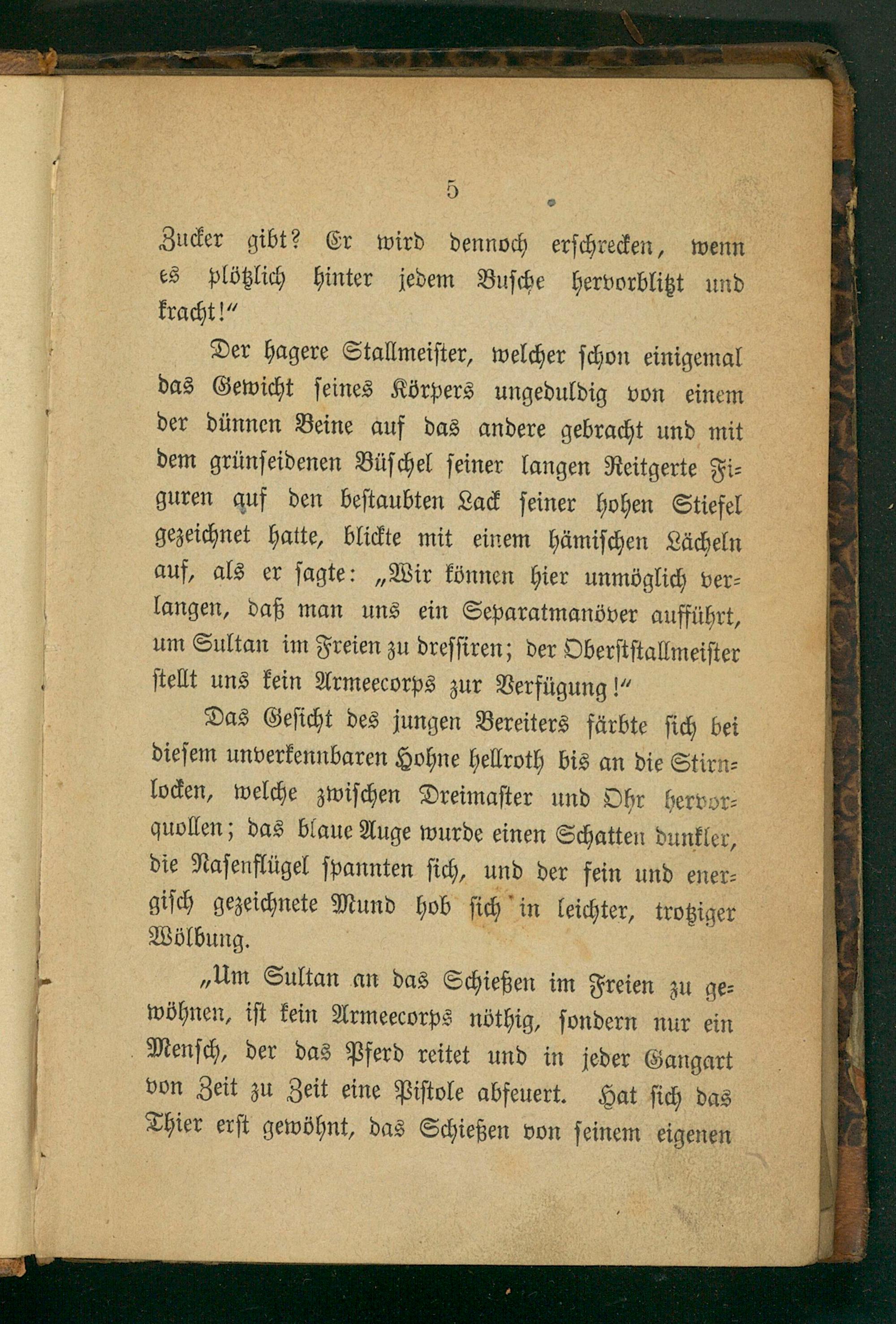 „Um Sultan an das Schießen im Freien zu ge⸗ wöhnen, iſt kein Armeecorps nöthig, ſondern nur ein