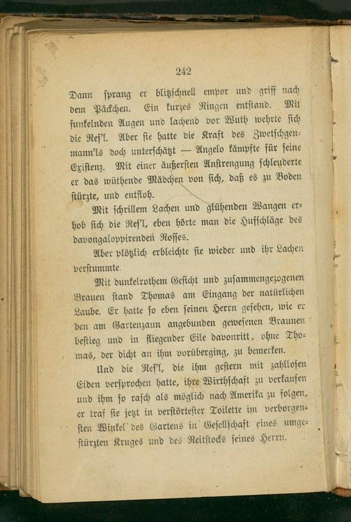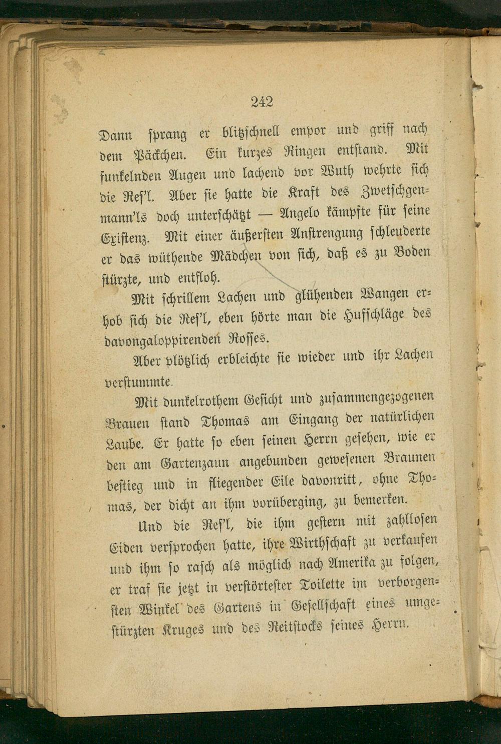 beſtieg und in fliegender Eile davonritt, ohne Tho⸗ mas, der dicht an ihm vorüberging, zu bemerken. Und die Reſ'l, die ihm geſtern mit zahlloſen Eiden verſprochen hatte, ihre Wirthſchaft zu verkaufen und ihm ſo raſch als möglich nach Amerika zu folgen,