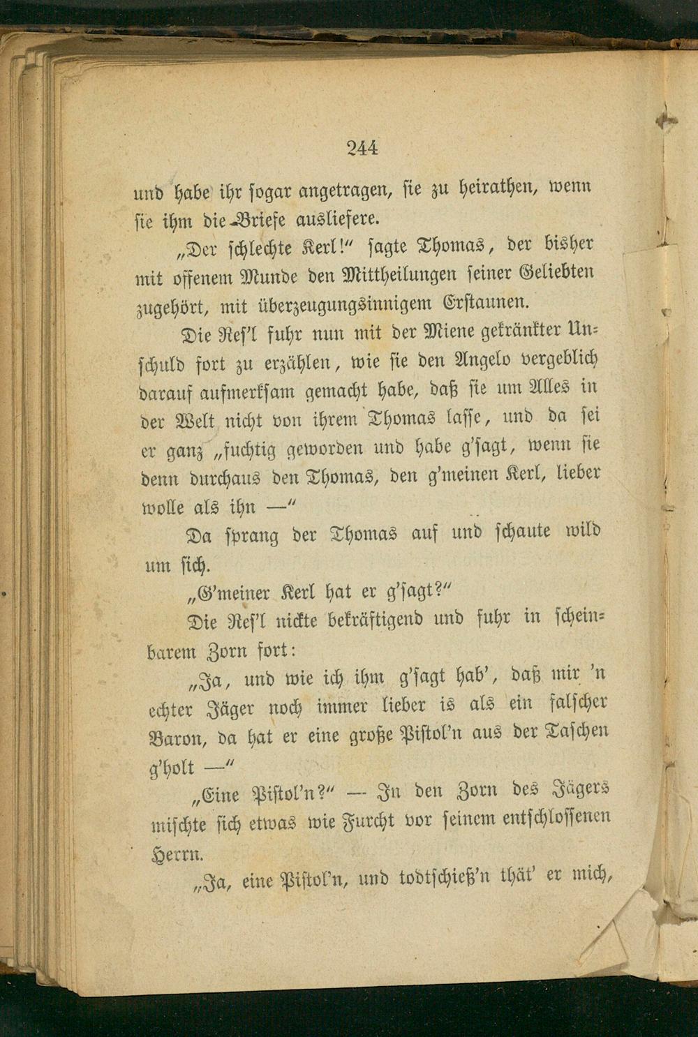 „Der ſchlechte Kerl!“ ſagte Thomas, der bisher mit offenem Munde den Mittheilungen ſeiner Geliebten zugehört, mit überzeugungsinnigem Erſtaunen.