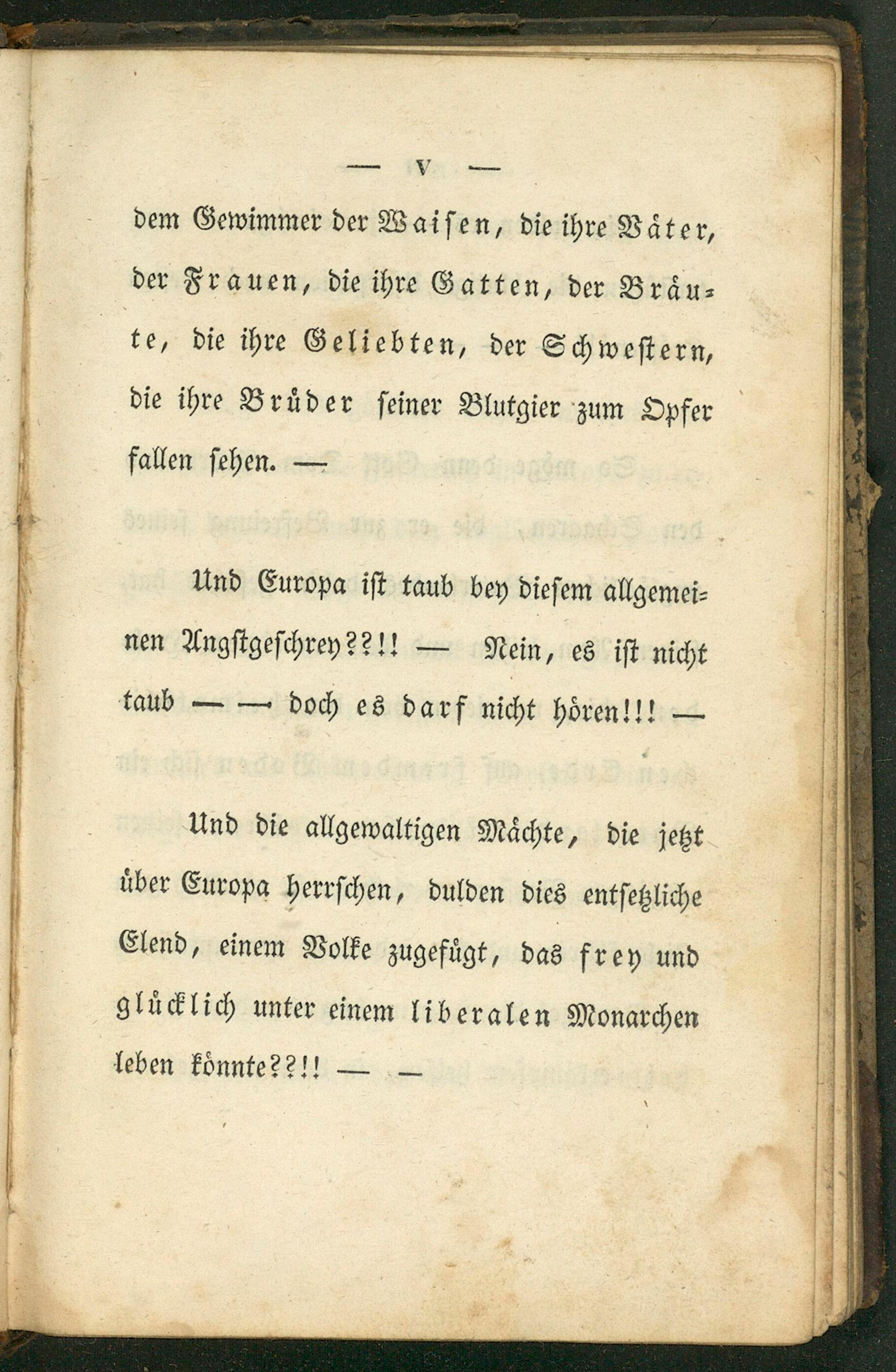 Und die allgewaltigen Maͤchte, die jetzt uͤber Europa herrſchen, dulden dies entſetzliche Elend, einem Volke zugefuͤgt, das frey und gluͤcklich unter einem liberalen Monarchen