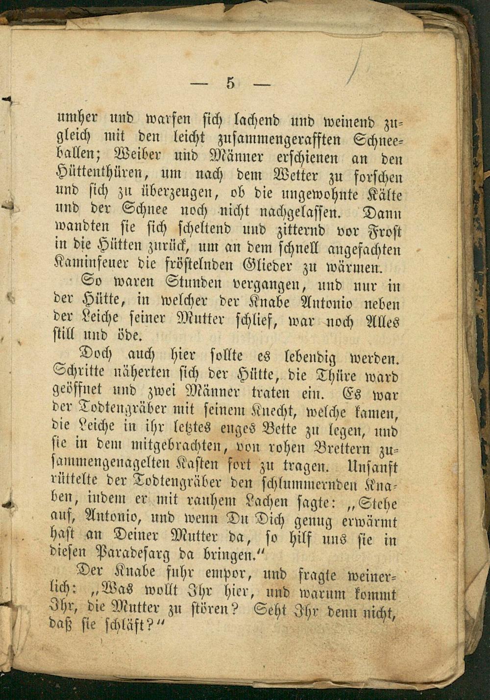 So waren Stunden vergangen, und nur in der Hütte, in welcher der Knabe Antonio neben der Leiche ſeiner Mutter ſchlief, war noch Alles ſtill und öde.