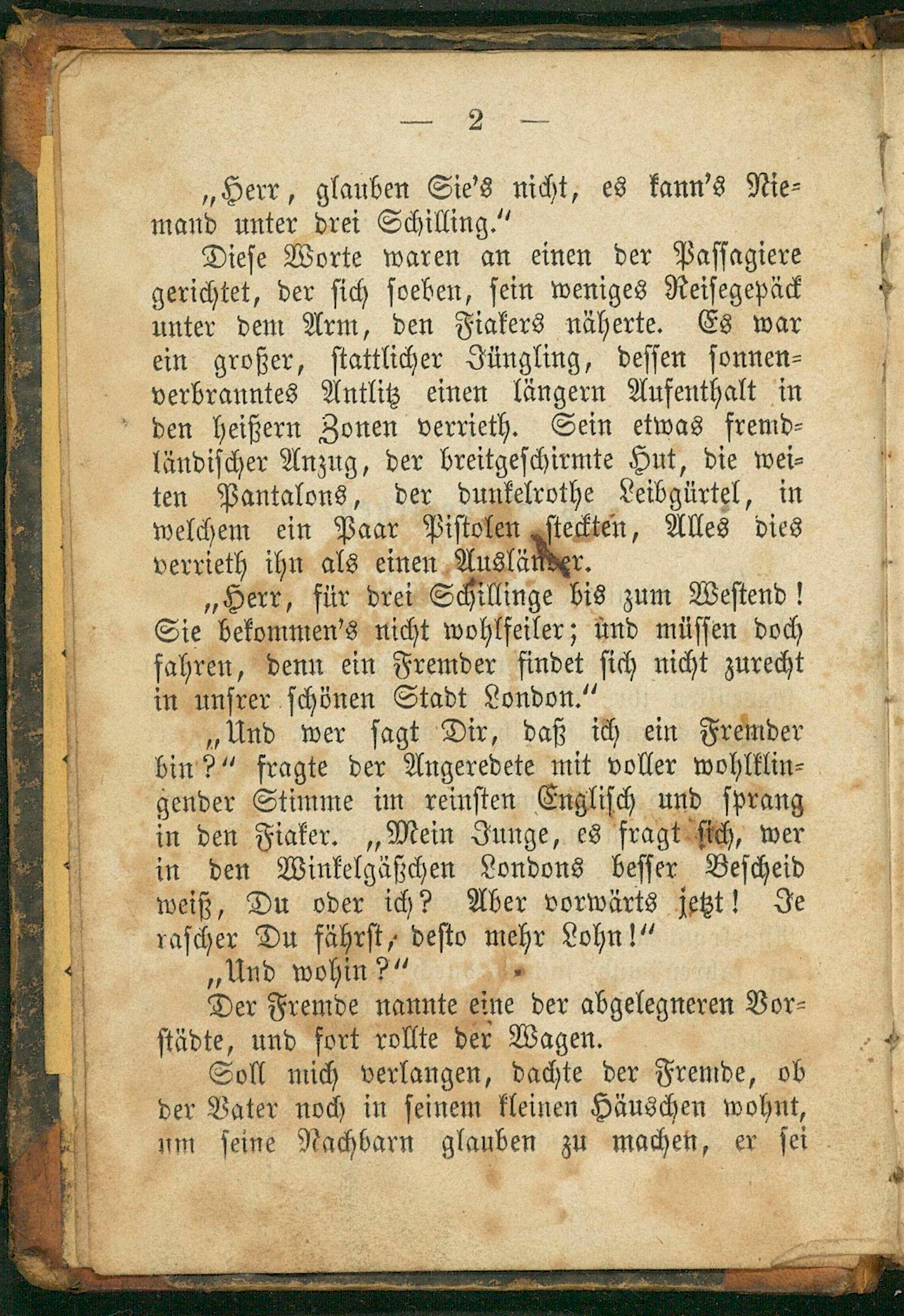 „Herr, für drei Schillinge bis zum Weſtend! b Sie bekommen's nicht wohlfeiler; und müſſen doch fahren, denn ein Fremder findet ſich nicht zurecht in unſrer ſchönen Stadt London.“„