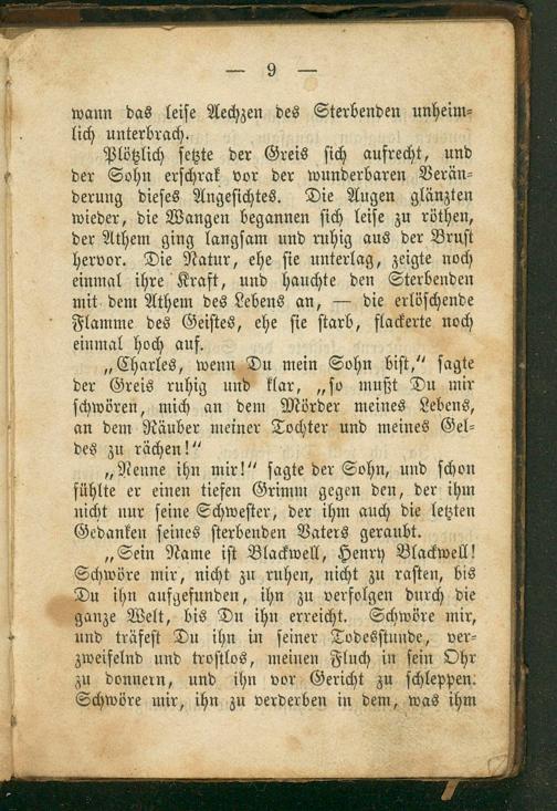 „Sein Name iſt Blackwell, Henry Blackwell! Schwöre mir, nicht zu ruhen, nicht zu raſten, bis Du ihn aufgefunden, ihn zu verfolgen durch die