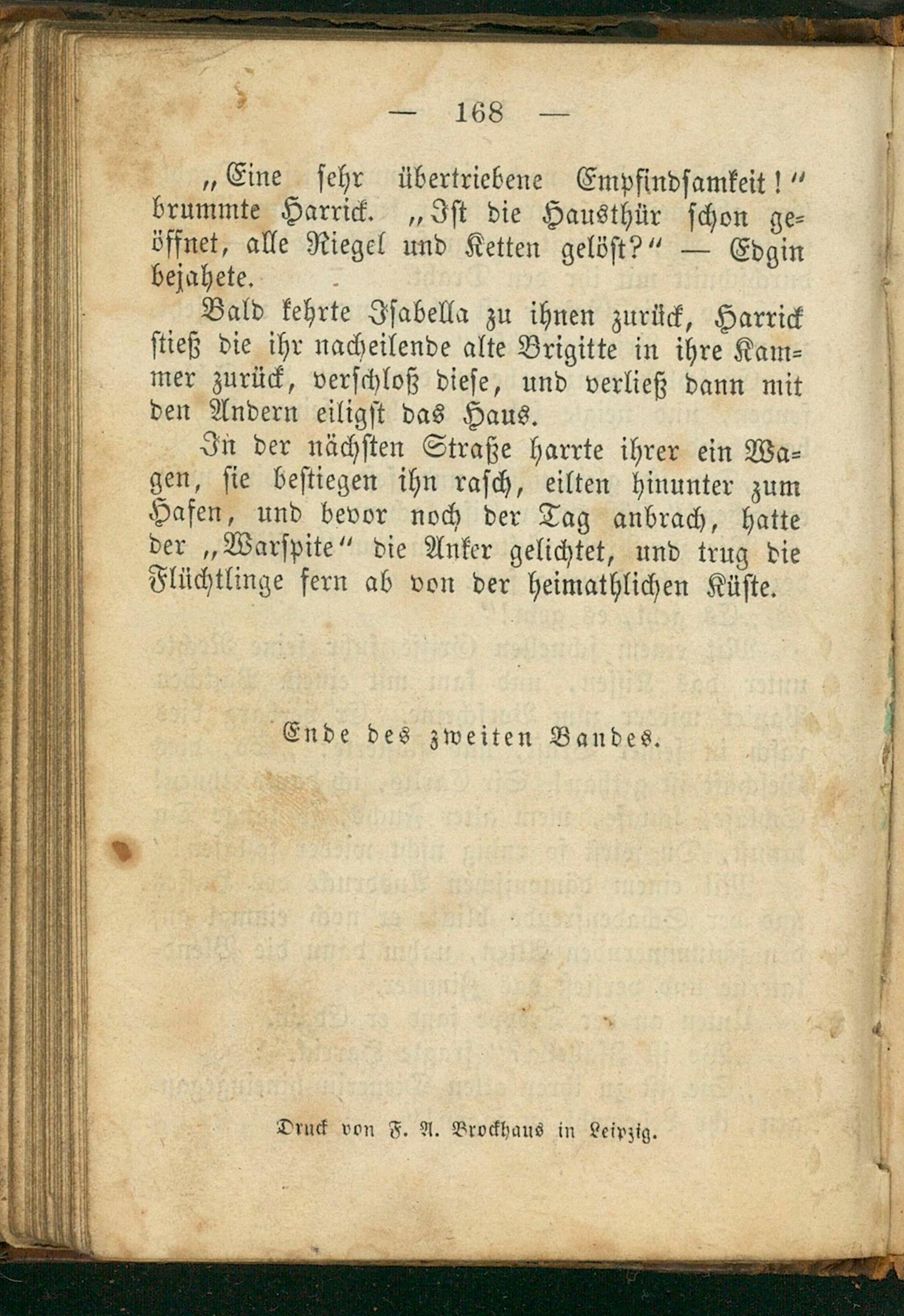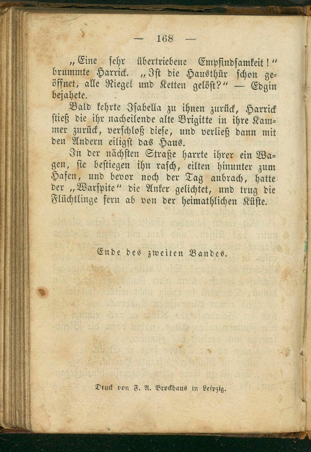 Bald kehrte Iſabella zu ihnen zurück, Harrick ſtieß die ihr nacheilende alte Brigitte in ihre Kam⸗ mer zurück, verſchloß dieſe, und verließ dann mit den Andern eiligſt das Haus.