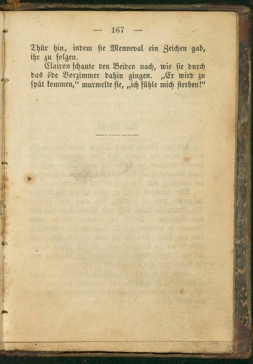 Clairon ſchaute den Beiden nach, wie ſie durch das öde Vorzimmer dahin gingen.„Er wird zu ſpät kommen,“ murmelte ſie,„ich fühle mich ſterben!“