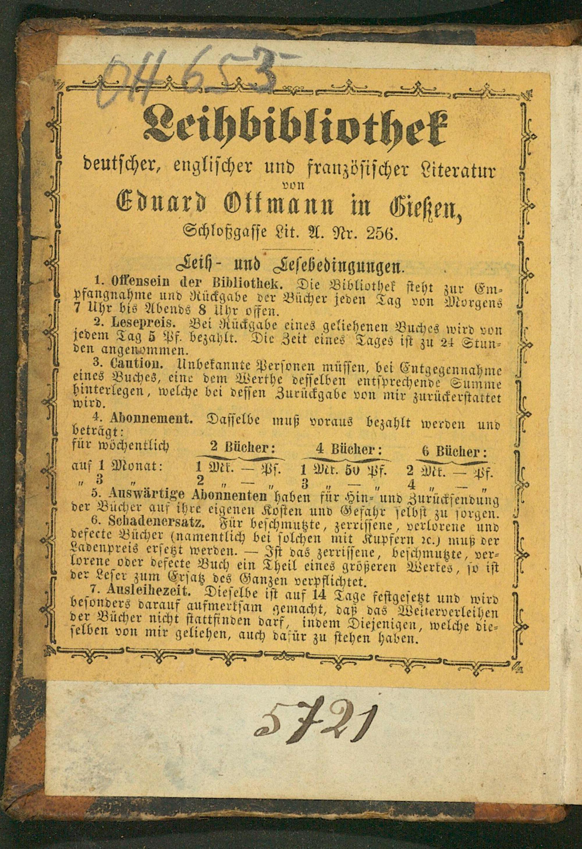von Cdnard Ottmann in Gießen, Schloßgaſſe Lit. A. Nr. 256.