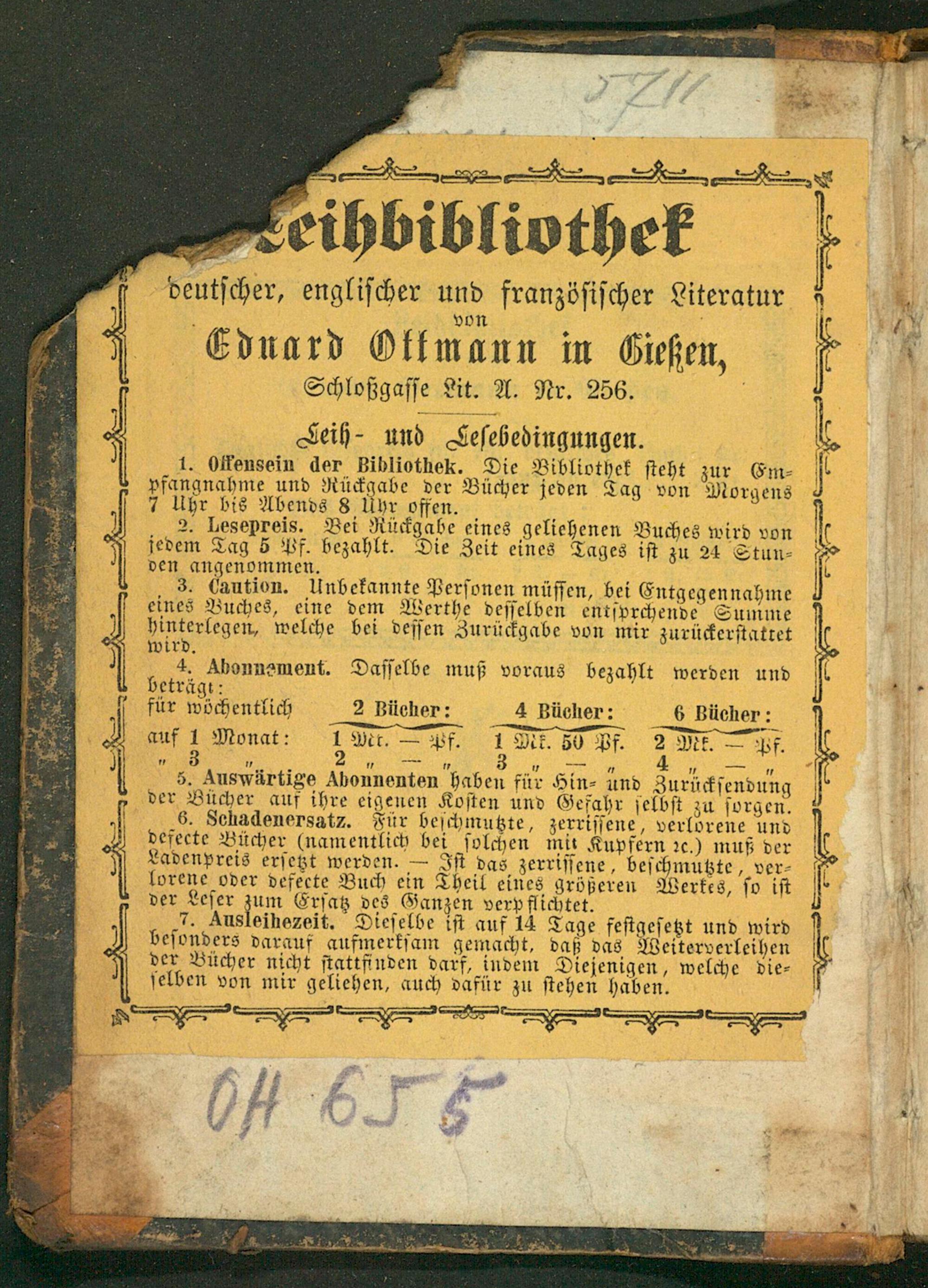 3. Caution. Unbekannte Perſonen müſſen, bei Entgegennahme eines Buches, eine dem Werthe deſſelben entſprchende Summe hinterlegen, welche bei deſſen Zurückgabe von mir zurückerſtattet