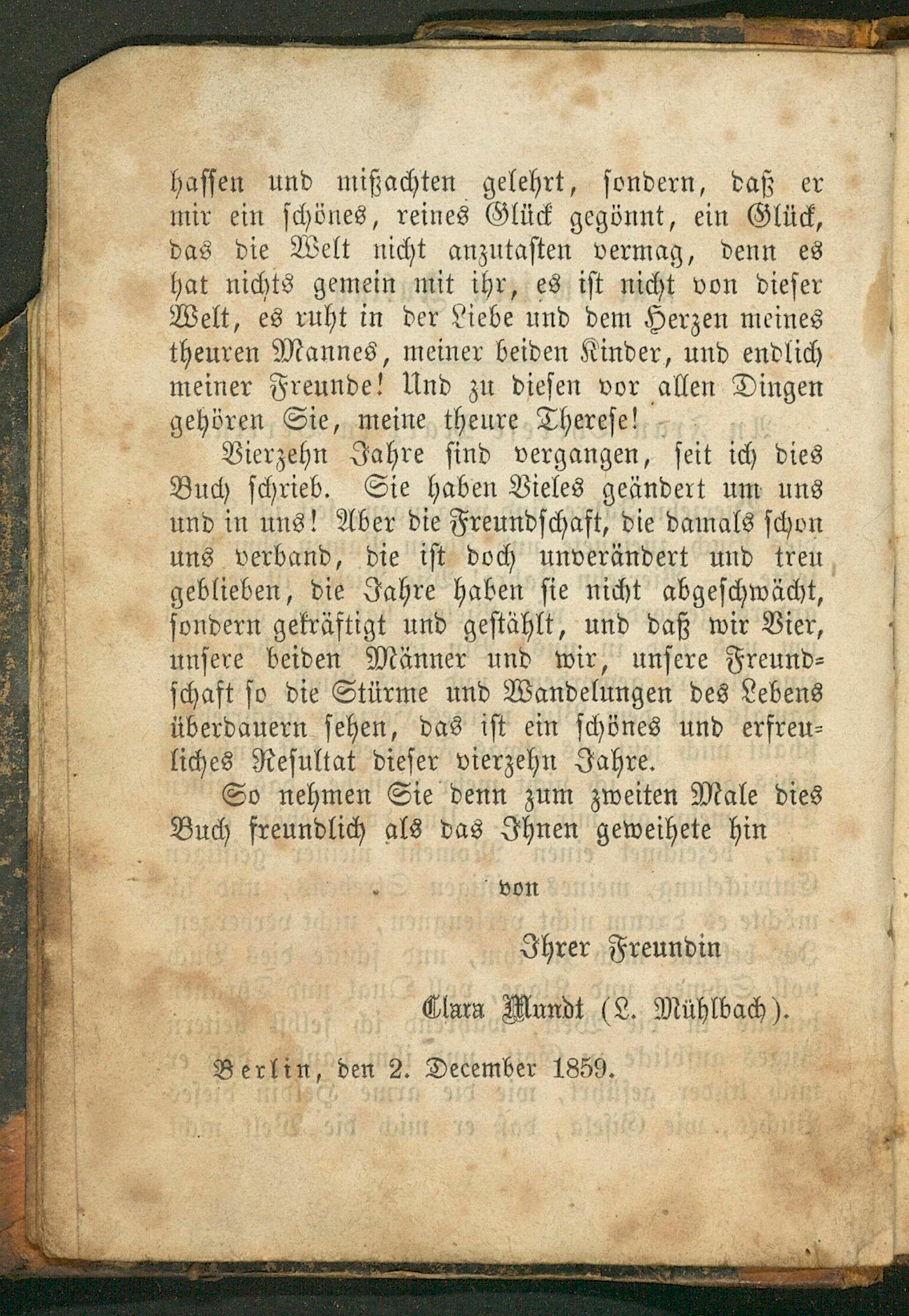 von Ihrer Freundin clarn Mundt(L. iu vun, den 2. December 1859.