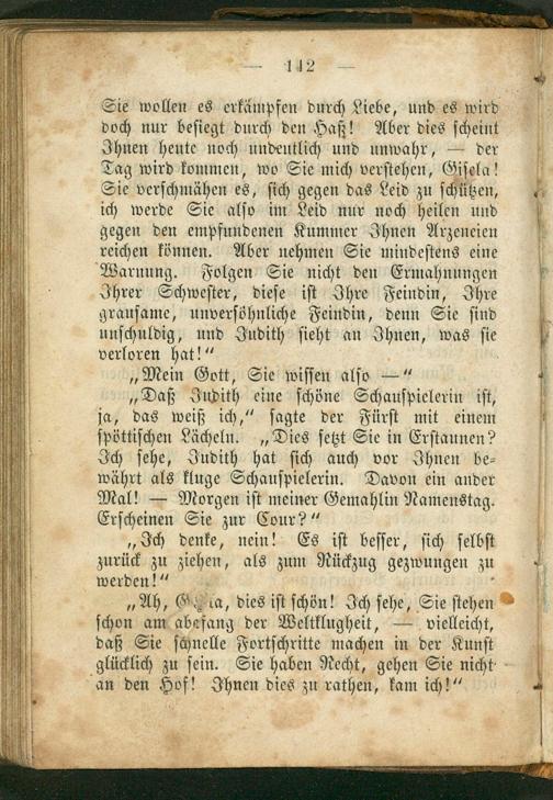 doch nur beſiegt durch den Haß! Aber dies ſcheint Ihnen heute noch undeutlich und unwahr,— der Tag wird kommen, wo Sie mich verſtehen, Giſela! Sie verſchmähen es, ſich gegen das Leid zu ſchützen, ich werde Sie alſo im Leid nur noch heilen und gegen den empfundenen Kummer Ihnen Arzeneien reichen können. Aber nehmen Sie mindeſtens eine Warnung. Folgen Sie nicht den Ermahnungen Ihrer Schweſter, dieſe iſt Ihre Feindin, Ihre grauſame, unverſöhnliche Feindin, denn Sie ſind unſchuldig, und ZJudith ſieht an Ihnen, was ſie verloren hat!“