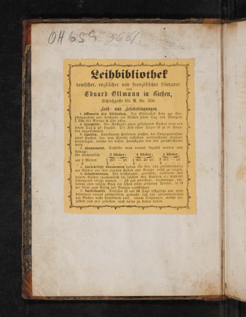 3. Caution. Unbekannte Perſonen müſſen, bei Entgegennahme eines Buches, eine dem Werthe deſſelben entſprechende Summ hinterlegen, welche bei deſſen Zurückgabe von mir zurückerſtattet wird.