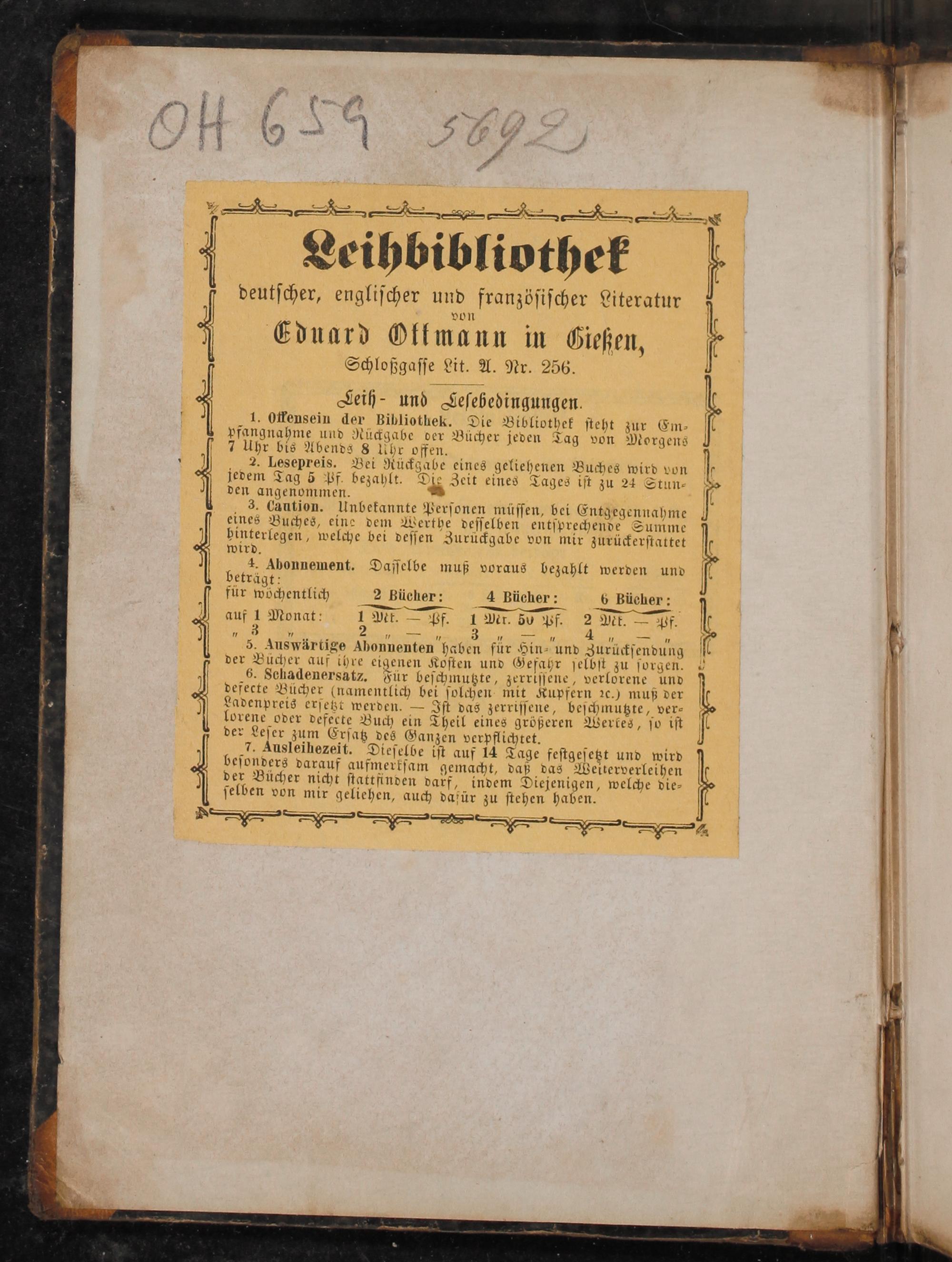 von 3 6duard Ottmann in Gießen, 1 Schloßgaſſe Lit. A. Nr. 256.