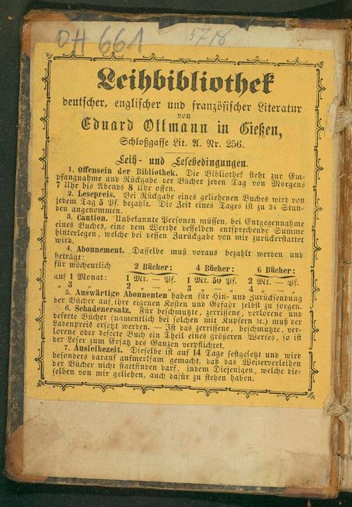 3. Caution. Unbekannte Perſonen müſſen, bei Entgegennahme eines Buches, eine dem Werthe deſſelben entſprechende Summe binterlegen, welche bei deſſen Zurückgabe von mir zurückerſtattet Si