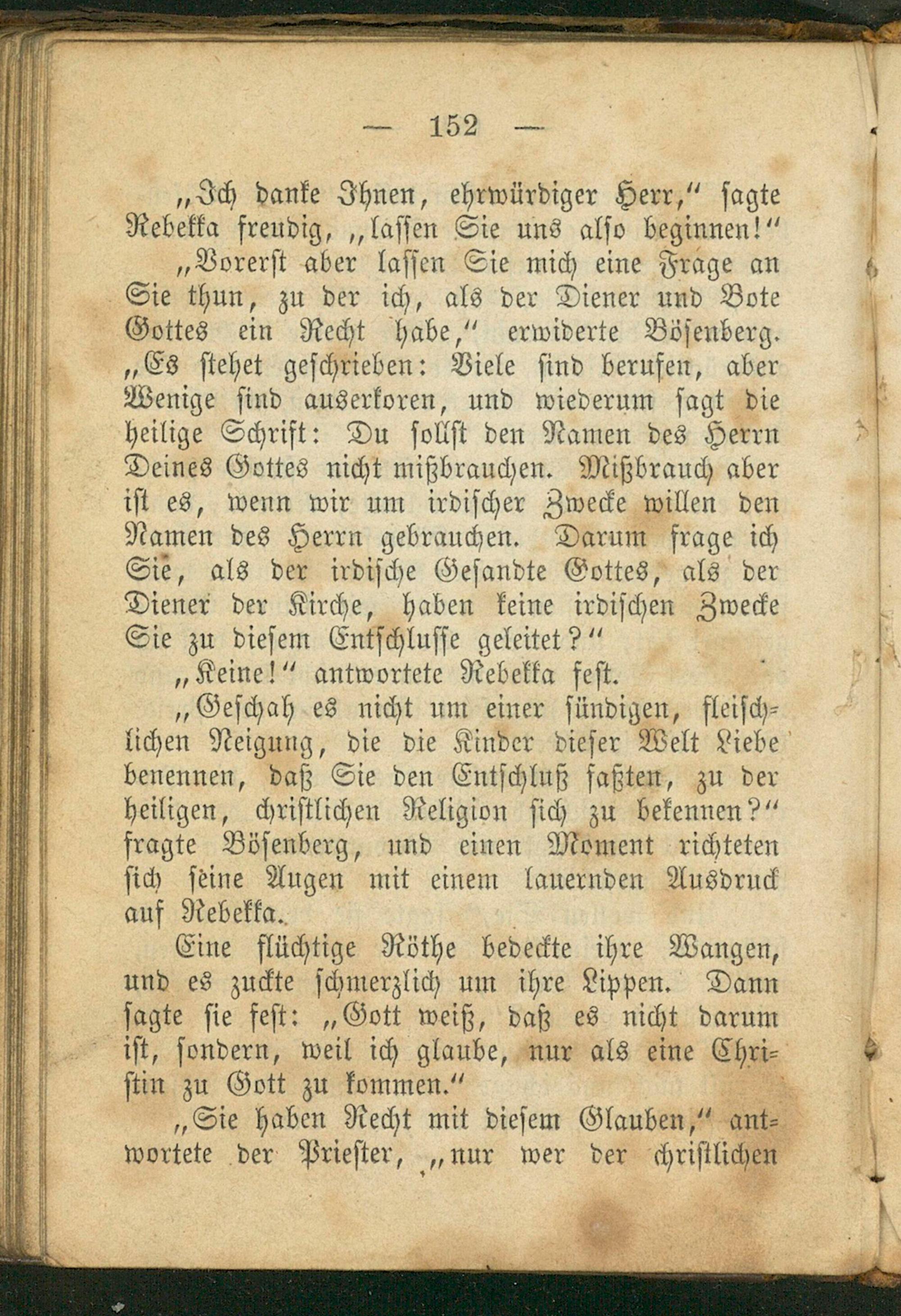 benennen, daß Sie den Entſchluß faßten, zu der heiligen, chriſtlichen Religion ſich zu bekennen?“ fragte Böſenberg, und einen Moment richteten ſich ſeine Augen mit einem lauernden Ausdruck auf Rebekka.