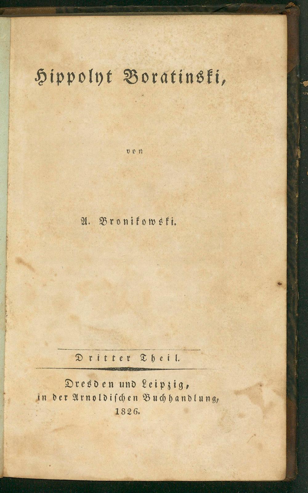 Hippolyt Boratinski, von A. Bronikowski. Drter Thei. Dresden und Leipzig, in der Arnoldiſchen Buchhandlung, 1826.