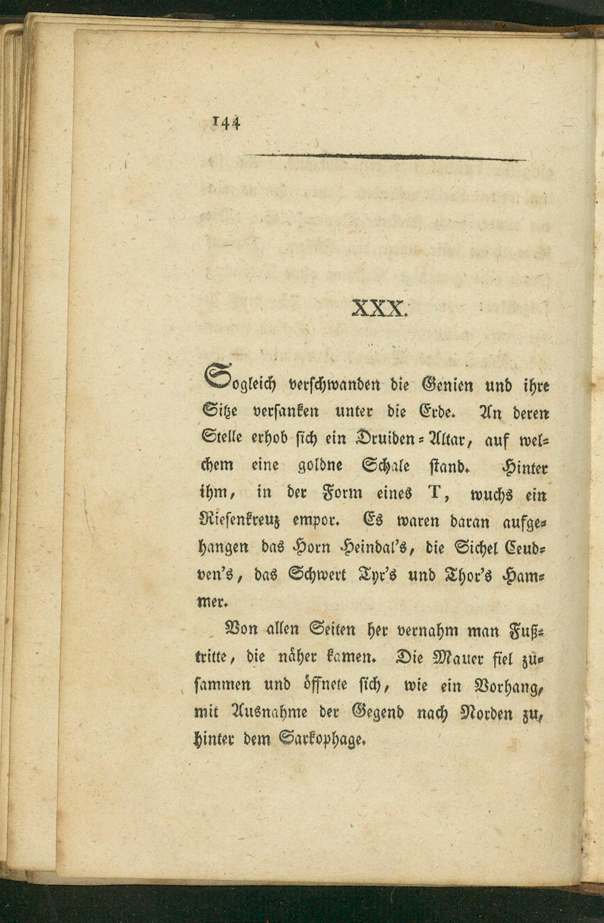 Von allen Seiten her vernahm man Fuß⸗ tritte, die naͤher kamen. Die Mauer fiel zu⸗ ſammen und oͤffnete ſich, wie ein Vorhang, mit Ausnahme der Gegend nach Norden zu, hinter dem Sarkophage.