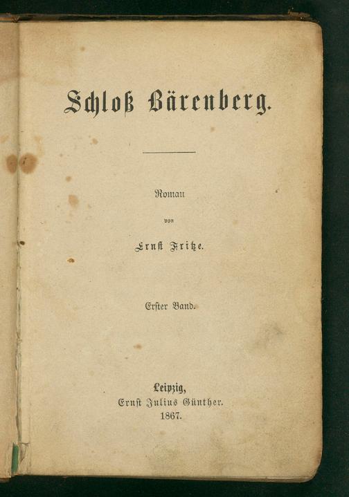 Schloß Bärenberg. Roman . von Irnſt Fritze. 2A Erſter Band. 3 14 Leipzig, Ernſt Julius Günther. 1867.