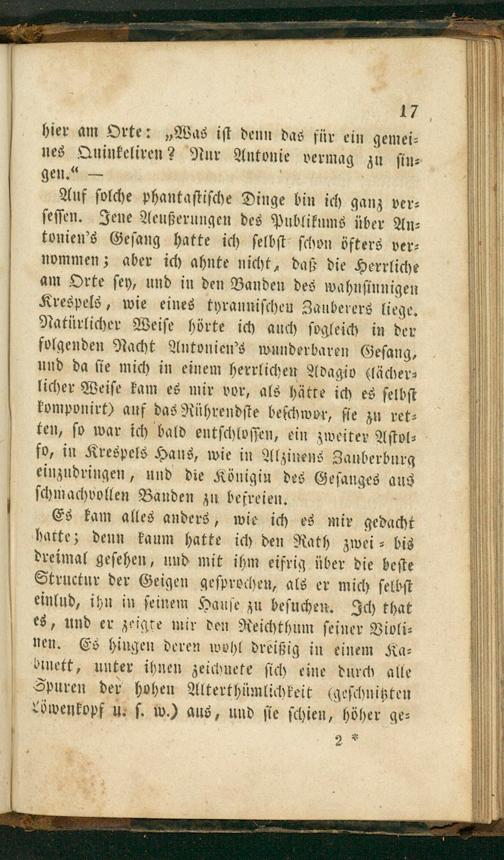 17 hier am Orte:„Was iſt denn das für ein gemei⸗ nes Quinkeliren? Nur Antonie vermag zu ſin⸗ gen.“— 3