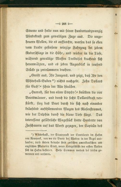 *) Whitehall, der Standpunkt der Bootsleute im Hafen von Rewyork, von wo die Boote bei Wetten in der Regel aus⸗ laufen; dieſe finden beinahe ſtets zwiſchen amerikaniſchen und engliſchen Matroſen Statt, wenn Kriegsſchiffe der erſten Nation ſich im Hafen befinden. Hohe Summen werden bei dieſen ge⸗ wonnen und verloren.