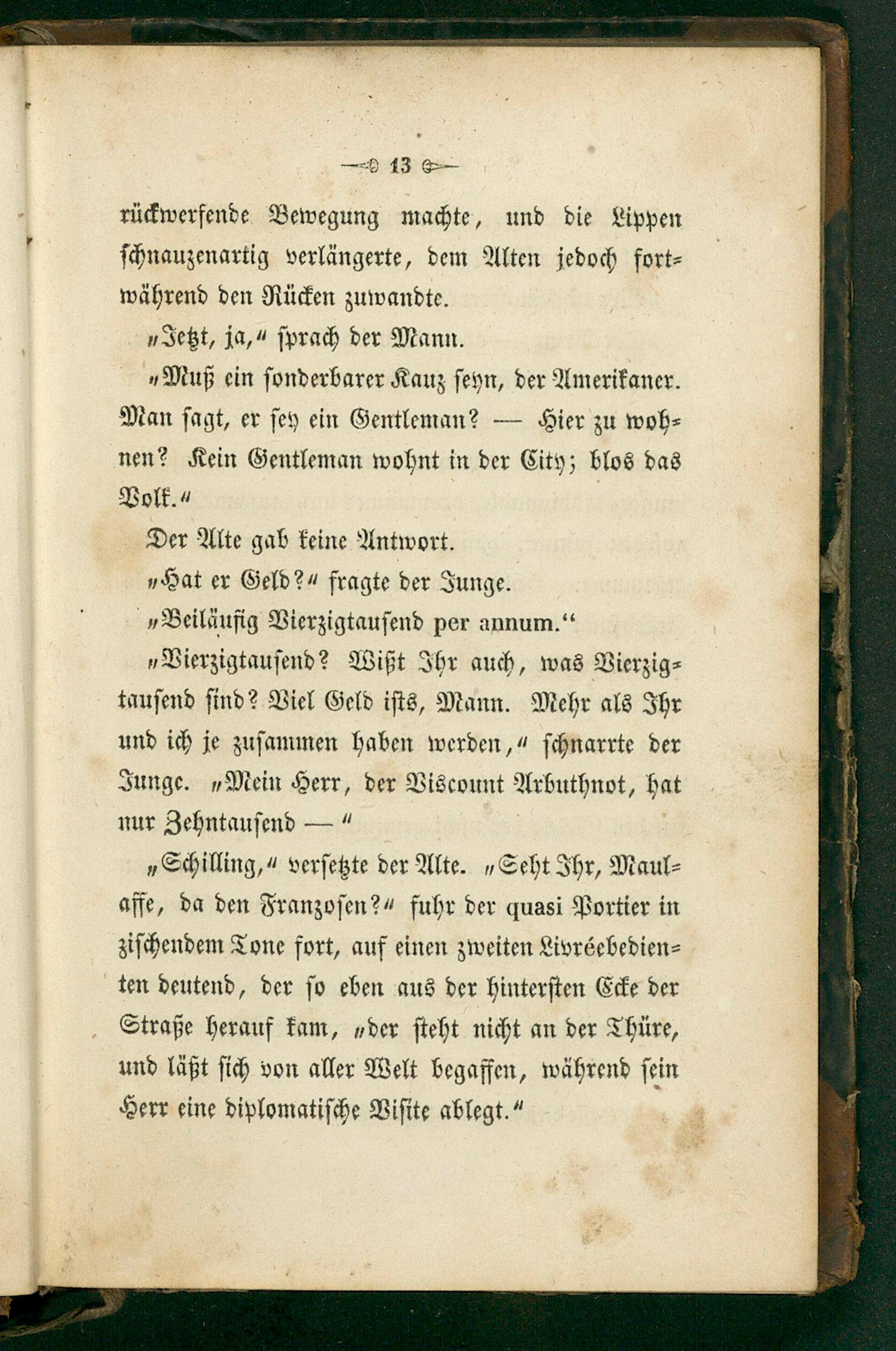 „Muß ein ſonderbarer Kauz ſeyn, der Amerikaner. Man ſagt, er ſey ein Gentleman?— Hier zu woh⸗ nen? Kein Gentleman wohnt in der City; blos das Volk.“