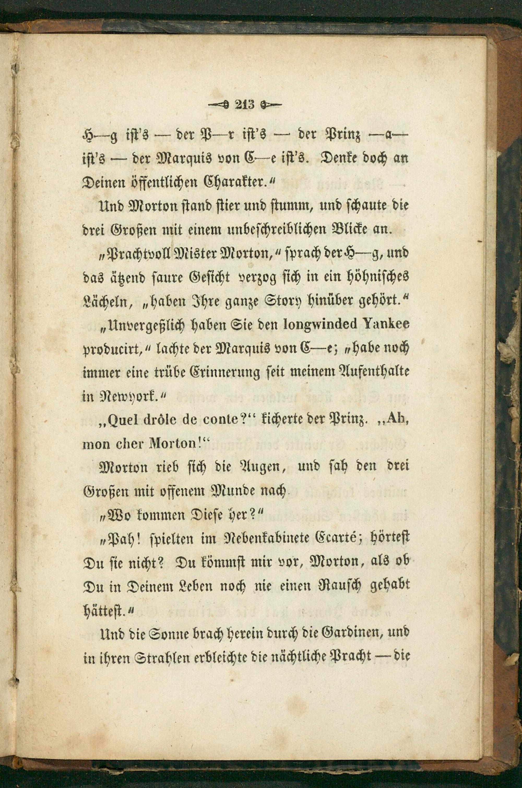 „Unvergeßlich haben Sie den longwinded Yankee producirt,“ lachte der Marquis von C—e;„habe noch immer eine trübe Erinnerung ſeit meinem Aufenthalte in Newyork.“