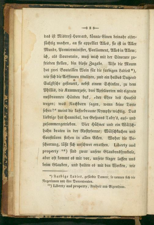 *) Farbige Ladies, gefärbte Damen; ſo nennen ſich die Negerinnen und ihre Descendenten. **) Liberty and property, Freiheit und Eigenthum.