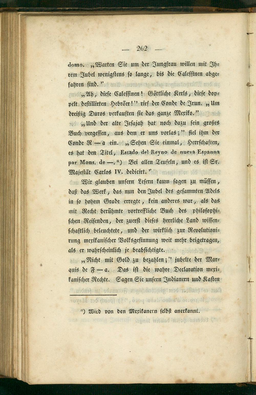 Wir glauben unſern Leſern kaum ſagen zu müſſen, daß das Werk, das nun den Jubel des geſammten Adels in ſo hohem Grade erregte, kein anderes war, als das mit Recht berühmte vortreffliche Buch des philoſophi⸗ ſchen Reiſenden, der zuerſt dieſes herrliche Land wiſſen⸗ ſchaftlich beleuchtete, und der wirklich zur Revolutioni⸗ rung mexikaniſcher Volksgeſinnung weit mehr beigetragen, als er wahrſcheinlich je beabſichtigte.