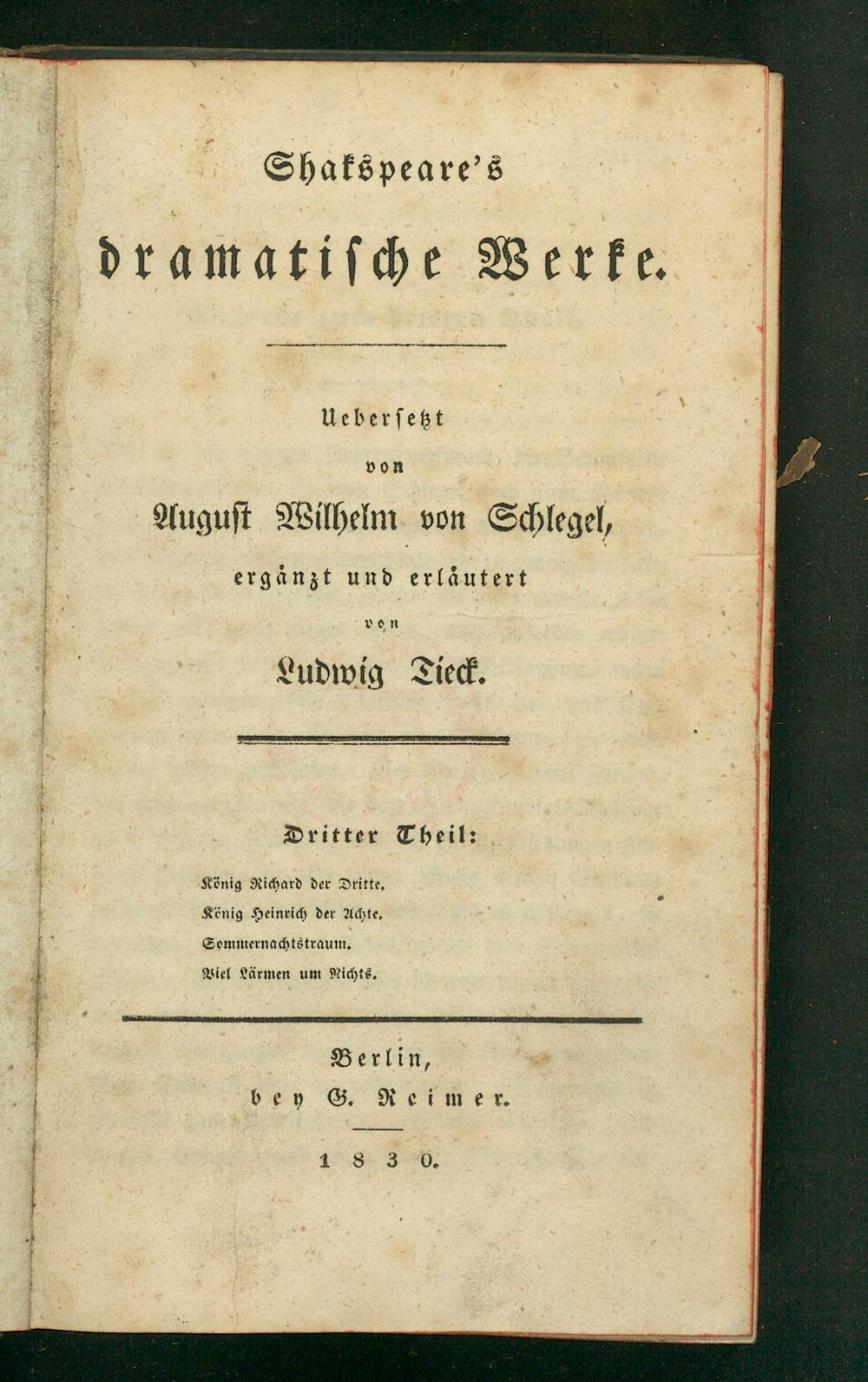 Dritter Theil: König Richard der Dritte. König Heinrich der Achte. Sommernachtstraum. + Viel Lärmen um Nichts.