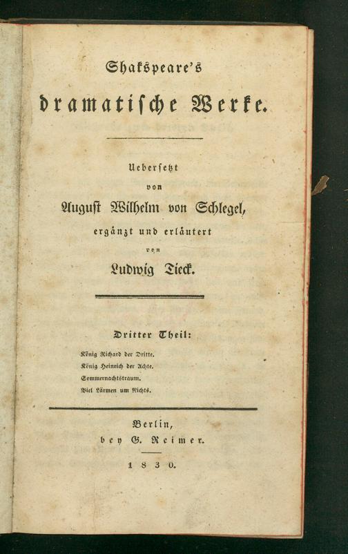 Ueberſetzt Auguſt Wilhelm von Schlegel,