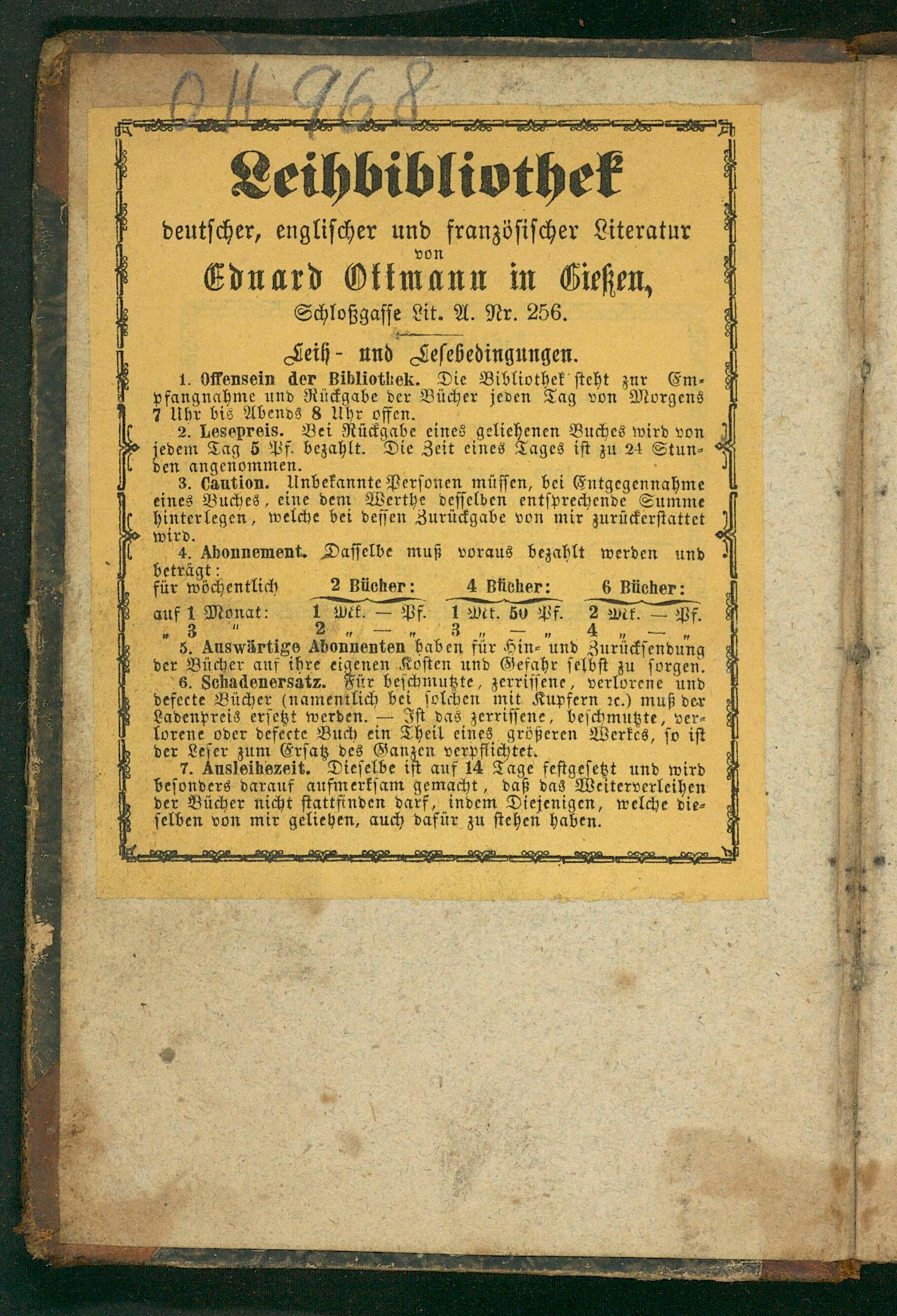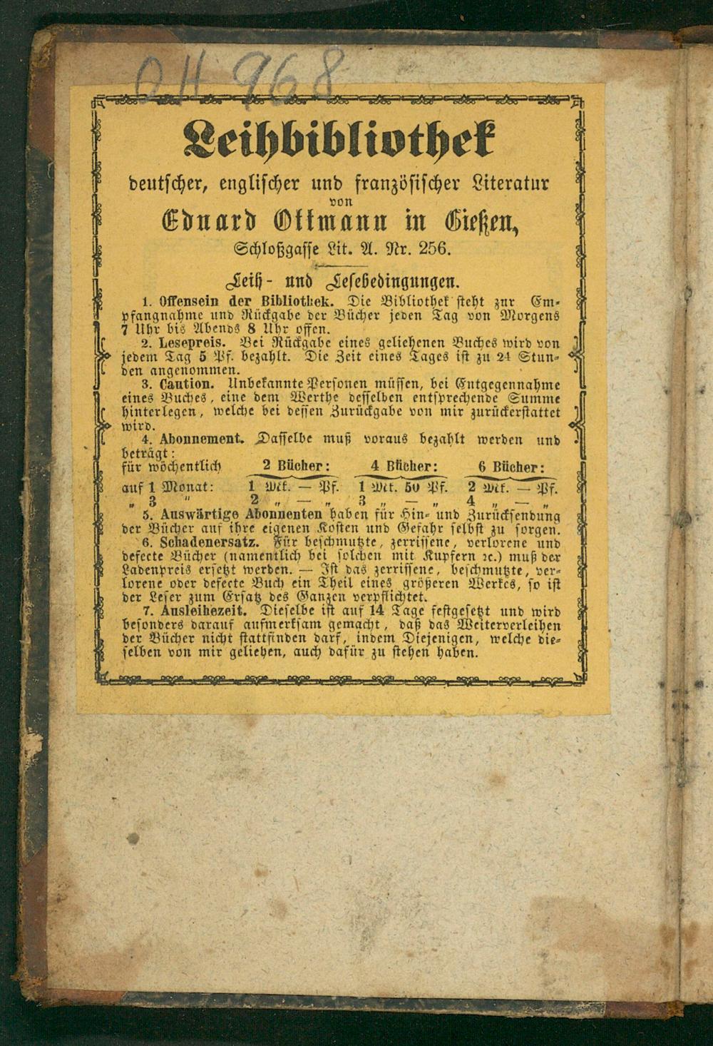 Leihbibliothe deutſcher, engliſcher und franzöſiſcher Literatur Eduard Ottmann in Gieſſen,