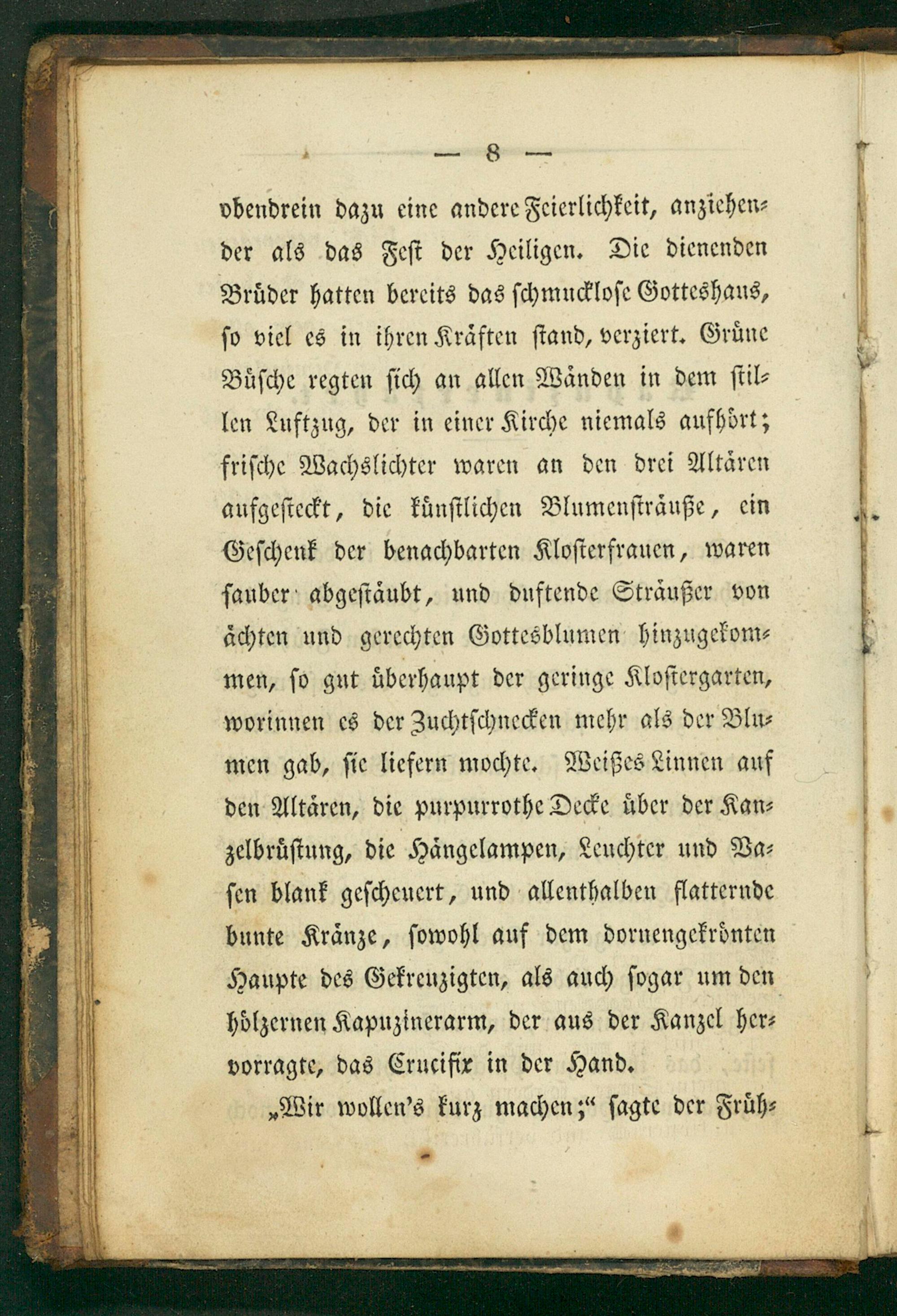 hoͤlzernen Kapuzinerarm, der aus der Kanzel her⸗ vorragte, das Crucifir in der Hand. „Wir wollen's kurz machen;“ ſagte der Fruͤh⸗