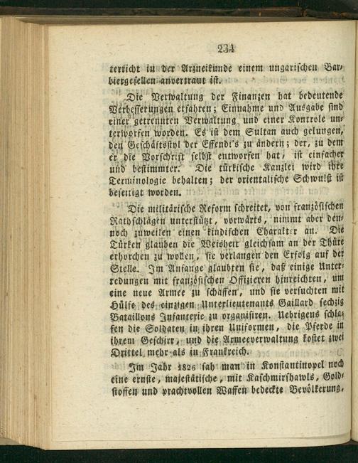 Im Jahr 1826 ſah man in Konſtantinopel noch eine ernſte, majeſtaͤtiſche, mit Kaſchmirſhawls, Gold⸗ ſtoffen und prachtvollen Waffen bedeckte Bevoͤlkerung⸗